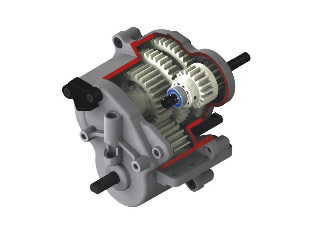 Model obsahuje dvou-rychlostní převodovku, která se automaticky přeřazuje. Tím je dosaženo vysoké rychlosti modelu, bez nutnosti manuálního řazení.