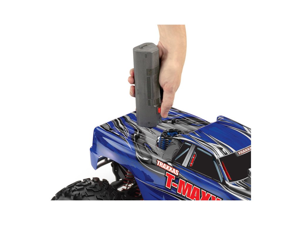 Vhledem k rychlejšímu vybíjení tužkových baterií v modelu, doporučujeme přijímač napájet akumulátorem Traxxas NiMH RX 1200mAh 6.0V kostka. Pro použití akumulátoru je nutné vyjmout bateriovou kartuš a vyměnit vypínač za 3034, který má vhodný konektor. Tento NiMH akumulátor můžete nabíjet přiloženým nabíječem, potřebujete pouze dokoupit redukční kabel Tamiya samice - RX samice.