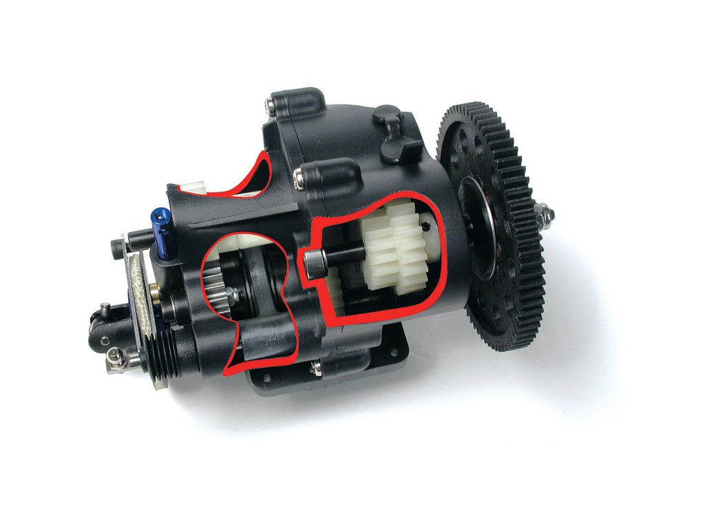 T-Maxx 2.5 Nitro má nainstalovanou dvoustupňovou automatickou převodovku se zpátečkou, která je řízena samostatným servem. Převodovka má na ozubeném kole náhonu výstupního hřídele nainstalovanou odstředivou spojku, která zabírá pouze při zvýšení otáčk motoru, proto při volnoběhu model nejede dopředu.