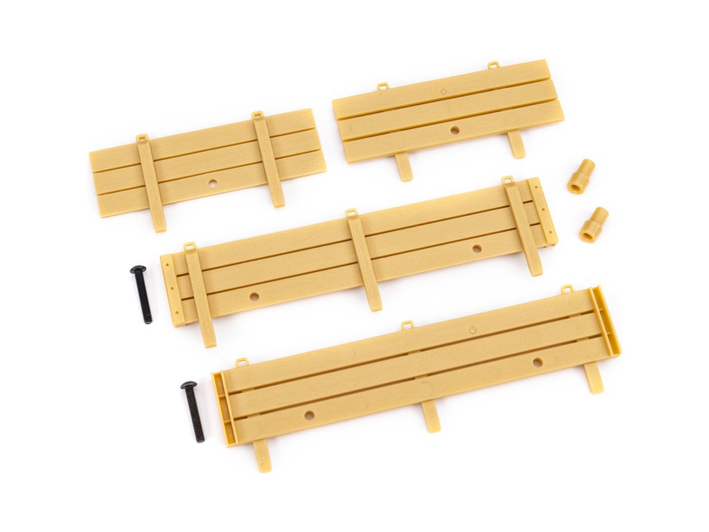 Boční panely pro přívěsný vozík Traxxas, které zvýší kapacitu ložného prostoru. Maketový vzhled s texturou dřeva. Otvory pro připevnění náhradních kol přívěsu (prodávají se samostatně).