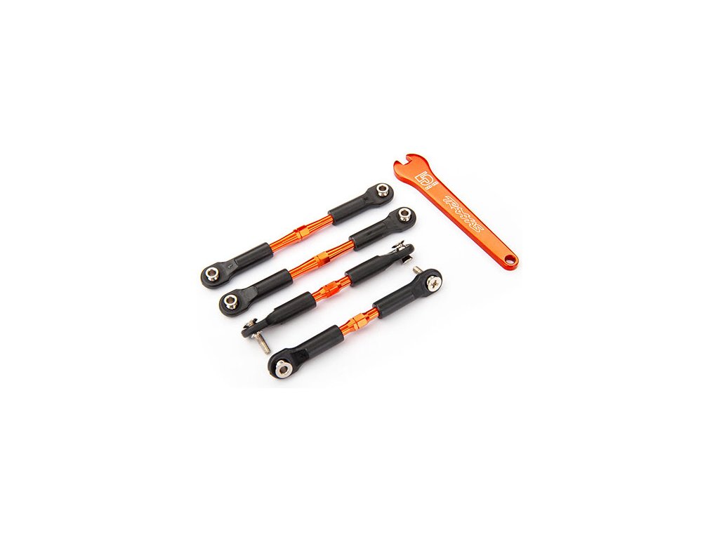 Sada dvou předních a dvou zadních hliníkových oranžově eloxovaných spojovaček. Vzájemná vzdálenost kulových čepů je 69 / 82 mm. Délka samotný hliníkové spojovačky je 39 / 49 mm. Zašroubováním resp. vyšroubováním koncovek lze zmenšit resp. zvětšit vzdálenost v rozsahu cca ±5 mm.