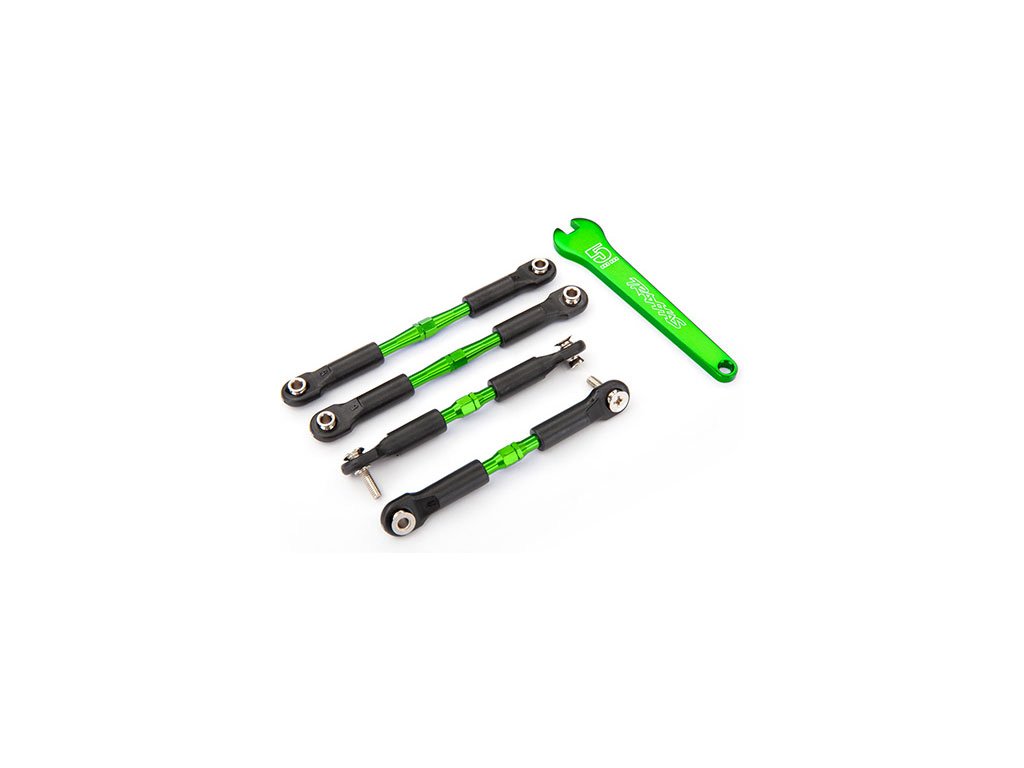 Sada dvou předních a dvou zadních hliníkových zeleně eloxovaných spojovaček. Vzájemná vzdálenost kulových čepů je 69 / 82 mm. Délka samotný hliníkové spojovačky je 39 / 49 mm. Zašroubováním resp. vyšroubováním koncovek lze zmenšit resp. zvětšit vzdálenost v rozsahu cca ±5 mm.