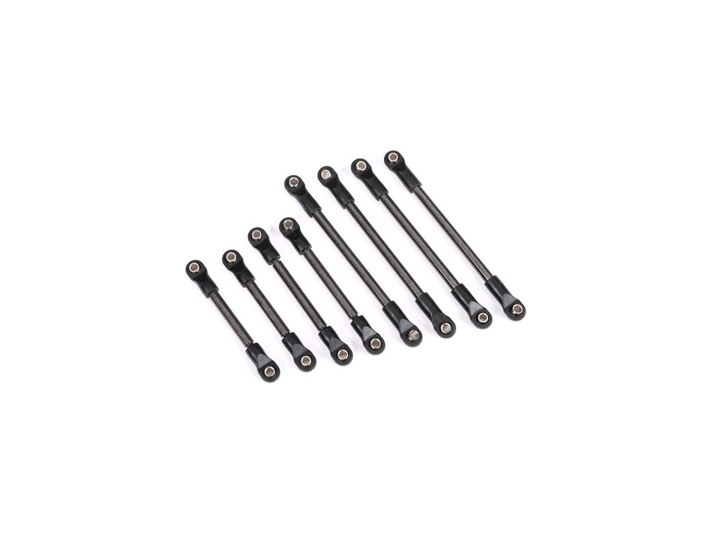 Tuningový díl pro RC modely aut Traxxas TRX-4M: ojničky podvozku ocelové. Sada vysoce pevných a odolných ojniček je určená pro montáž na model TRX-4M High Trail s rozvorem 162 mm.