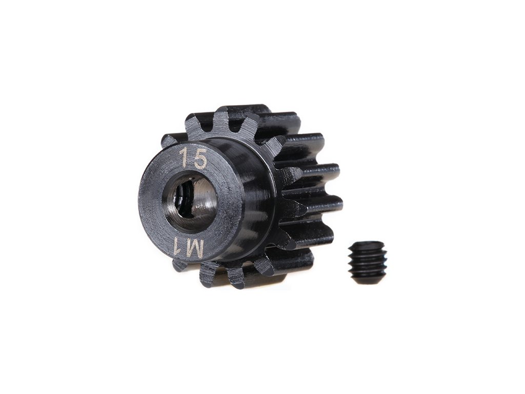 Traxxas pastorek na hřídel 5 mm s 15 zuby a modulem ozubení 1 mm pro RC modely aut. Vyrobeno z kalené nástrojové oceli. Součástí balení je červík.