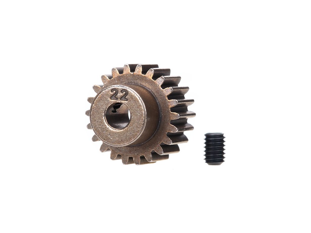 Traxxas pastorek na hřídel 3.17 mm (1/8") s 22 zuby a modulem ozubení 48DP pro RC modely aut. Vyrobeno z sintrované oceli. Součástí balení je červík.