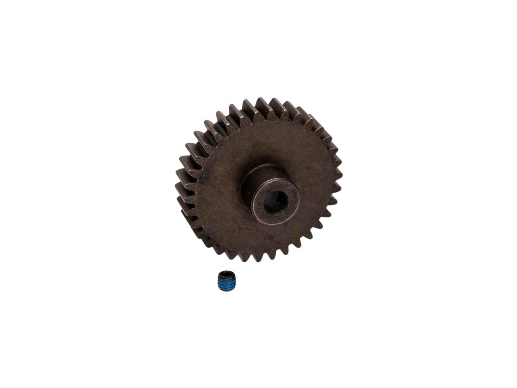 Traxxas pastorek na hřídel 5 mm s 34 zuby a modulem ozubení 1 mm pro RC modely aut. Vyrobeno z sintrované oceli. Součástí balení je červík.