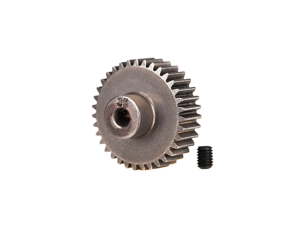 Traxxas pastorek na hřídel 3.17 mm (1/8") s 35 zuby a modulem ozubení 48DP pro RC modely aut. Vyrobeno z sintrované oceli. Součástí balení je červík.