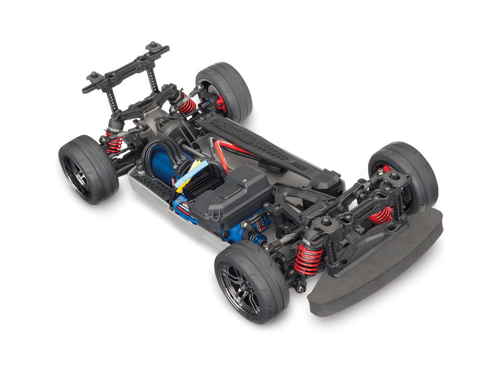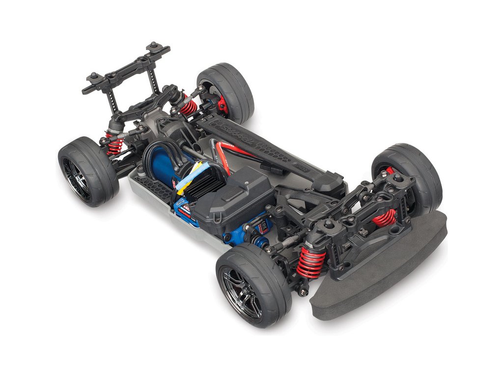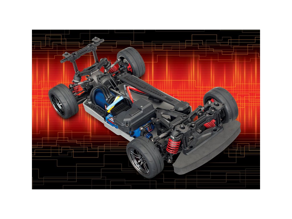 Skvostné šasi on-road RC modelu auta Traxxas 4-Tec 2.0 VXL. Měřítko 1:10, pohon všech kol, výkonný střídavý motor Velineon 550 a regulátor VXL-3s, elektronická stabilizace jízdy TSM. Rychlost až 112 km/hod. Kompatibilní se standardními on-road karosériemi.