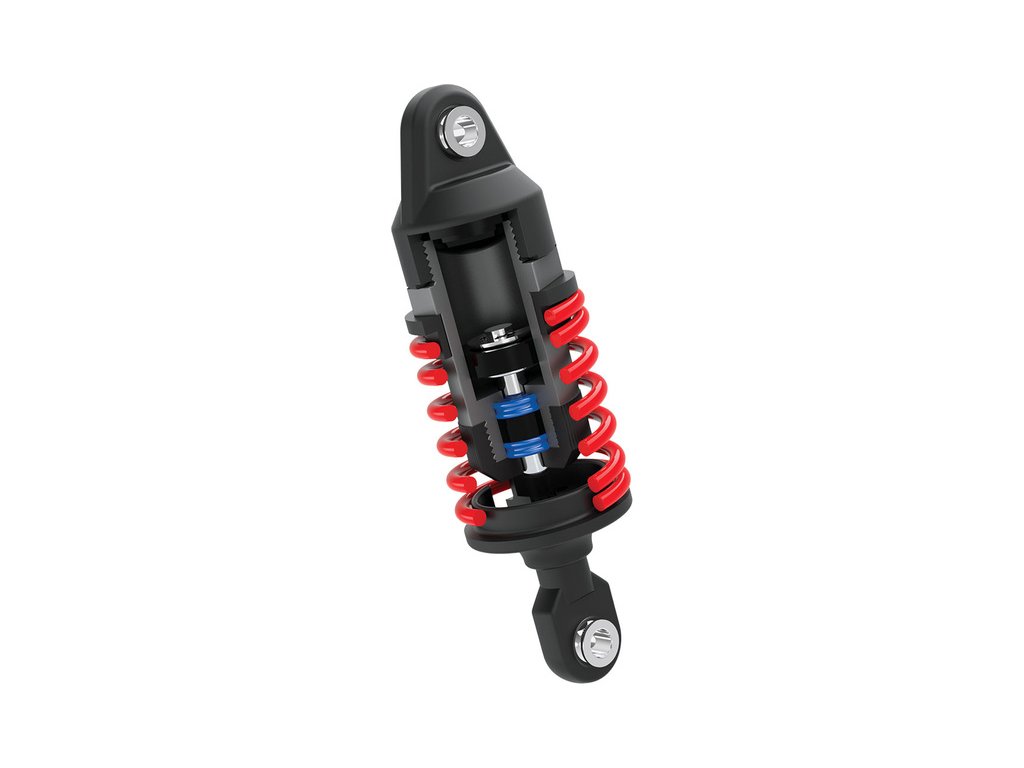 Podvozek 4-Tec 2.0 účinně překonává nerovnosti pomocí olejových tlumičů s exkluzivními X-kroužky, které skvěle těsní. Tlumiče jsou nastavitelné - předpětí pružin lze změnit pomocí podložek, tuhost můžete upravit změnou viskozity oleje v tlumiči.