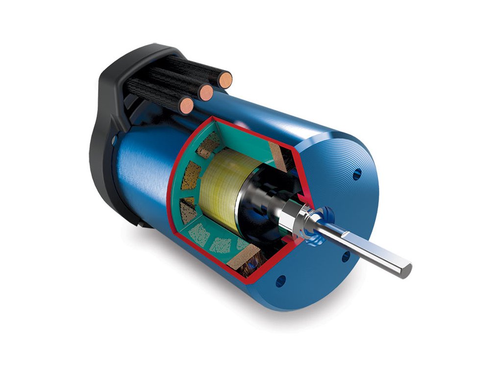 Motor je řady 550, má 4-pólovou konstrukci, která oproti dvoupólové verzi zajišťuje až dvojnásobný kroutící moment. Rotor je dynamicky vyvážen a pro zvýšení pevnosti opředen kevlarovou tkaninou.