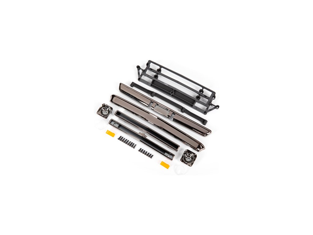 Traxxas příslušenství karosérie černě chromované - obsahuje: přední mřížku (vrchní/spodní), domečky světlometů (levé/pravé), nárazníky (přední/zadní), montážní příslušenství.