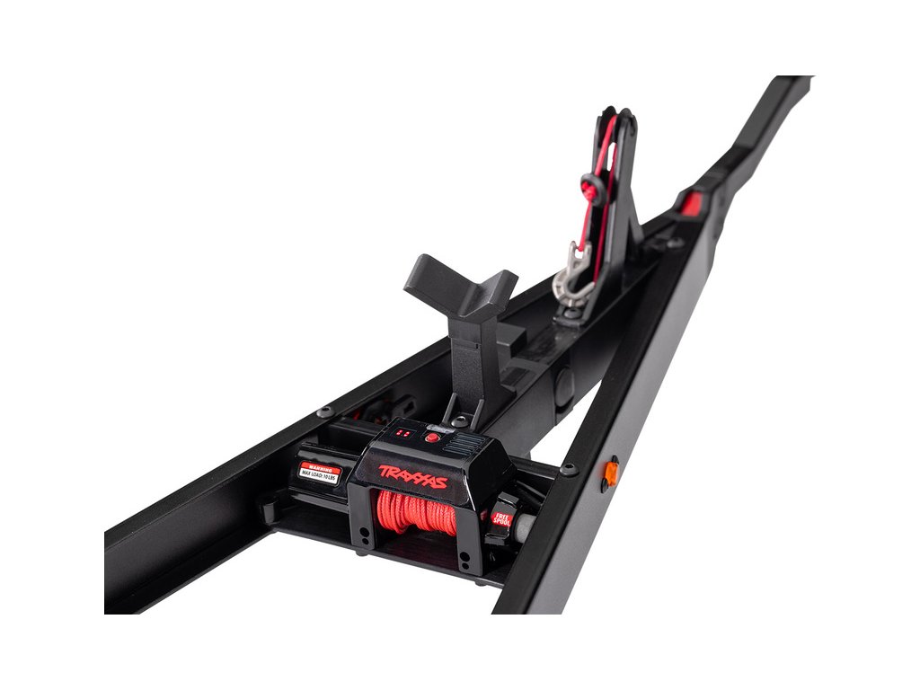 Přívěs je připraven pro instalaci dálkově ovládaného elektrického navijáku, se kterým můžete loď přitáhnout na korbu. Naviják se napájí z modelu auta.