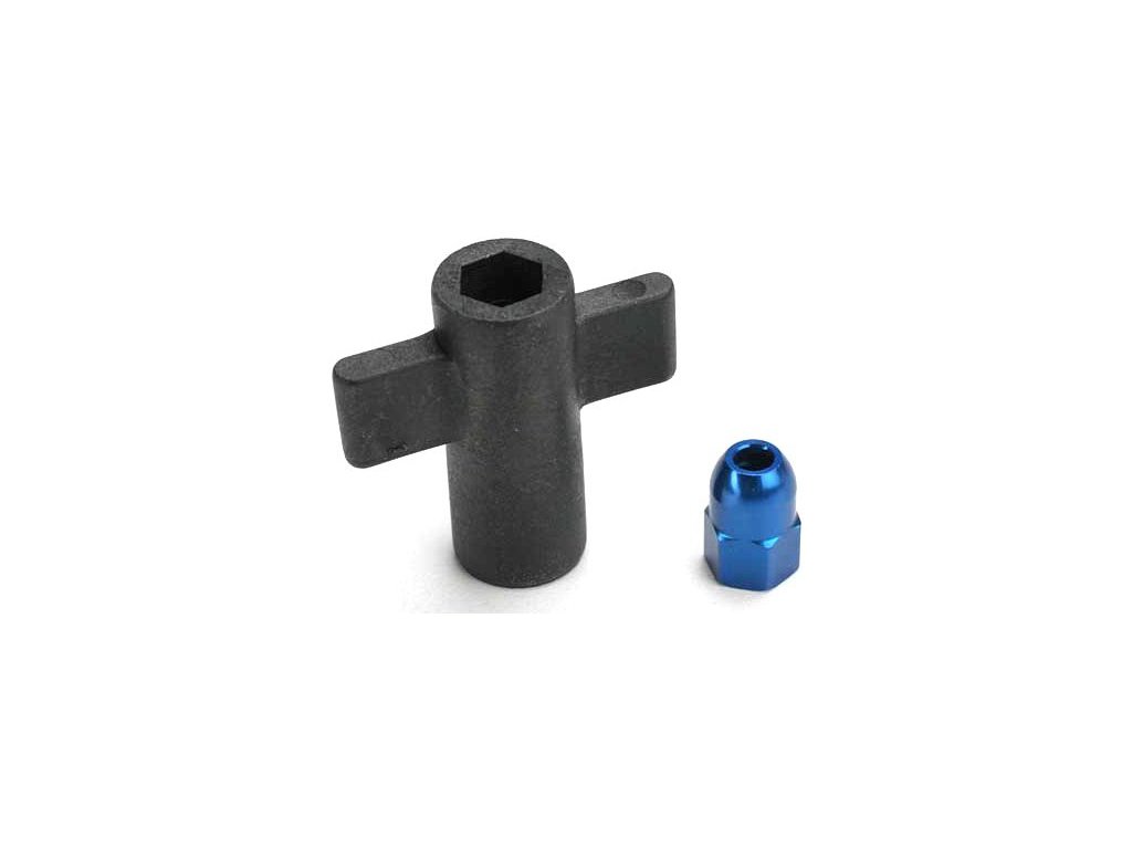 Matice modrá hliníková Traxxas slouží pro utažení trubičky antény v kleštině. K utažení matice je přiložen nástrčný klíč.