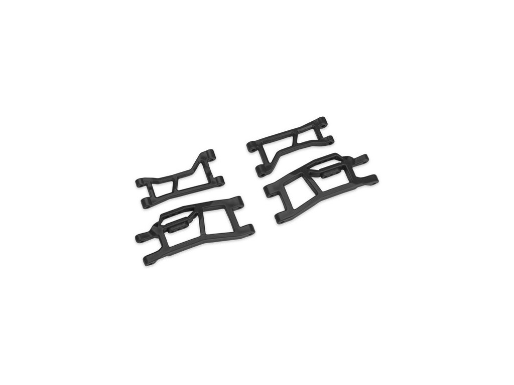 Traxxas ramena podvozku přední černé (sada) (levé horní, pravé horní, levé spodní, pravé spodní). Určeno pro použití se sadou #10790 Mini WideMaxx. Náhradní díl pro Mini XRT.