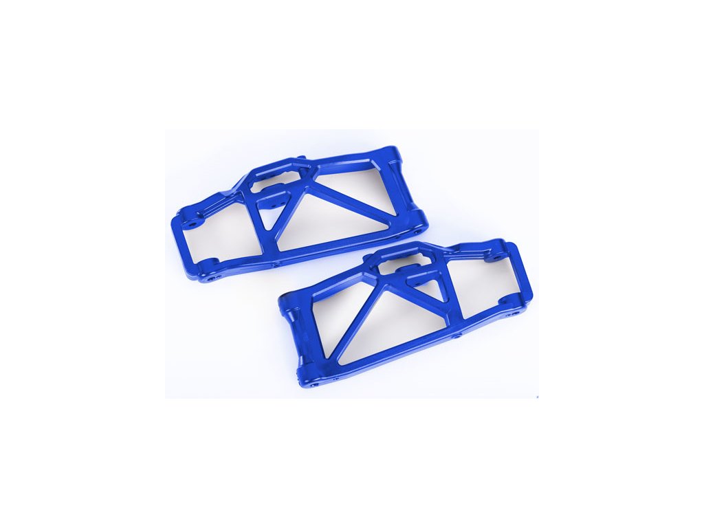 Náhradní díl pro RC model auta Traxxas Maxx Slash: rameno podvozku spodní modré (2 ks, levé a pravé, přední nebo zadní). Odolná ramena jsou vyrobena z nejtvrdšího kompozitního materiálu Traxxas pro vysoké zatížení.