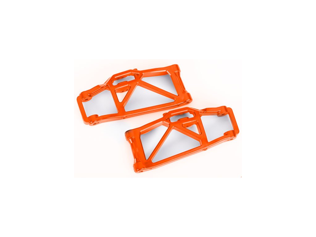 Náhradní díl pro RC model auta Traxxas Maxx Slash: rameno podvozku spodní oranžové (2 ks, levé a pravé, přední nebo zadní). Odolná ramena jsou vyrobena z nejtvrdšího kompozitního materiálu Traxxas pro vysoké zatížení.