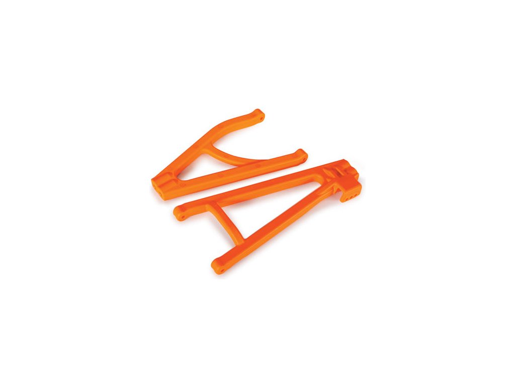 Náhradní díl pro RC modely aut Traxxas E-Revo 1:8 VXL: ramena závěsu kol zadní levé oranžové - tuningový díl. Otvory pro nastavitelný rozvor.