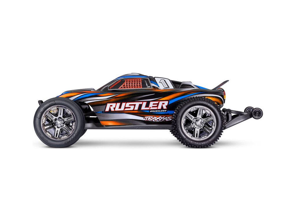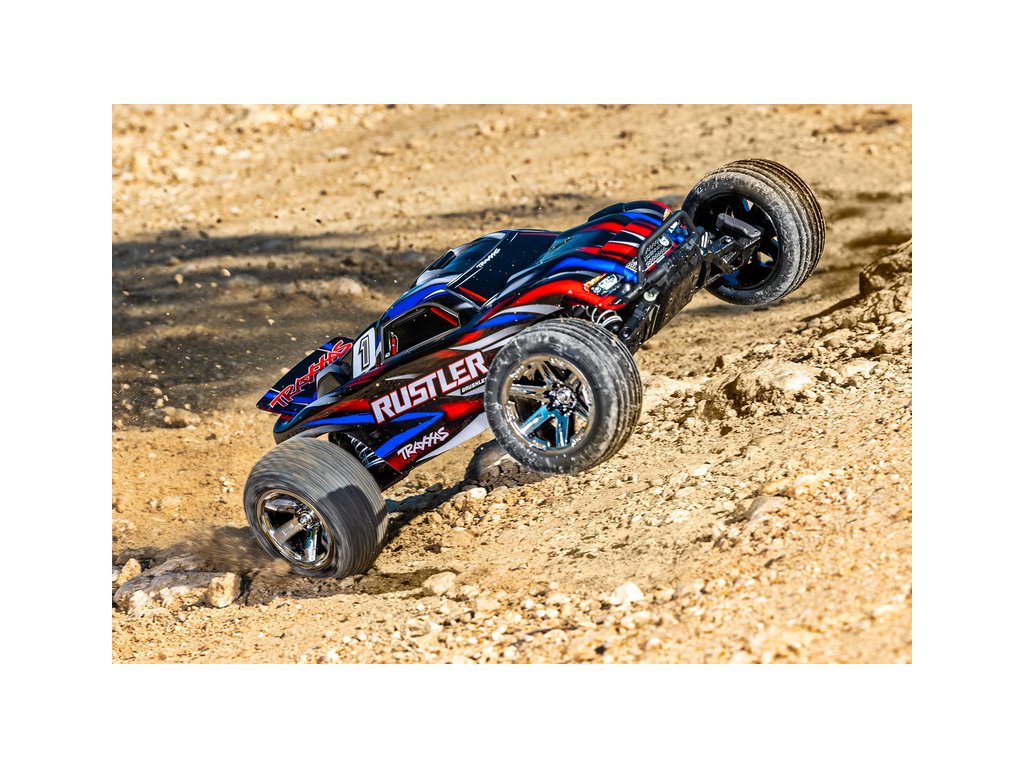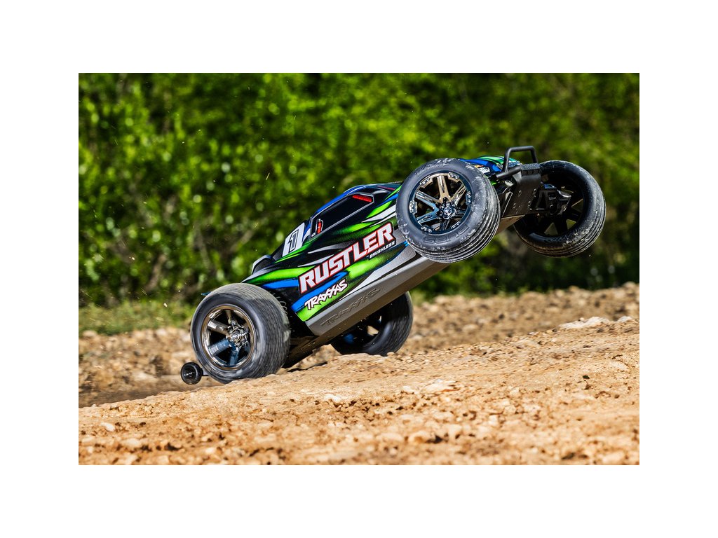RC model auta Rustler 1:10 typu Truggy je poháněn střídavým motorem a regulátorem BL-2S pro napájení 2S LiPo akumulátory. Střídavý pohonný systém přináší brutálnější akceleraci, dlouhou životnost a rychlost modelu až 64 km/h. Navíc je model továrně vybaven sadou Extreme Heavy Duty pro vysokou odolnost a exkluzivním bez-sponkovým systémem upínání karoserie.