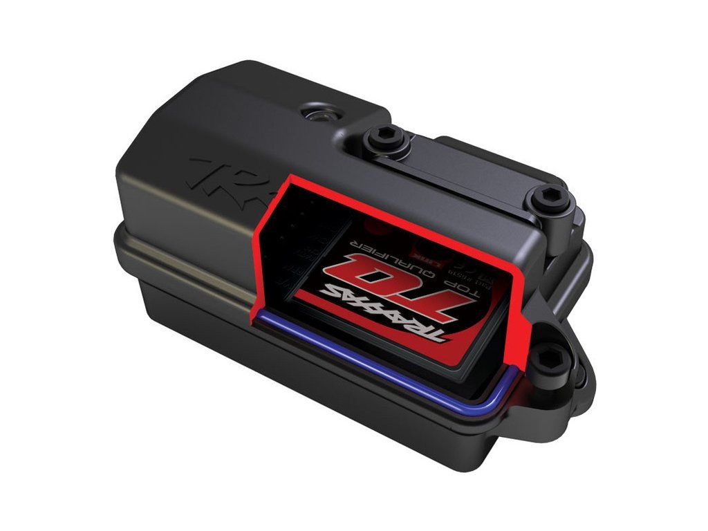 Tří-kanálový přijímač Traxxas TQ 2.4 GHz, zajišťuje bezpečné řízení bez výpadků. Snadné spárování jedním tlačítkem. Indikace stavu pomocí LED diody.