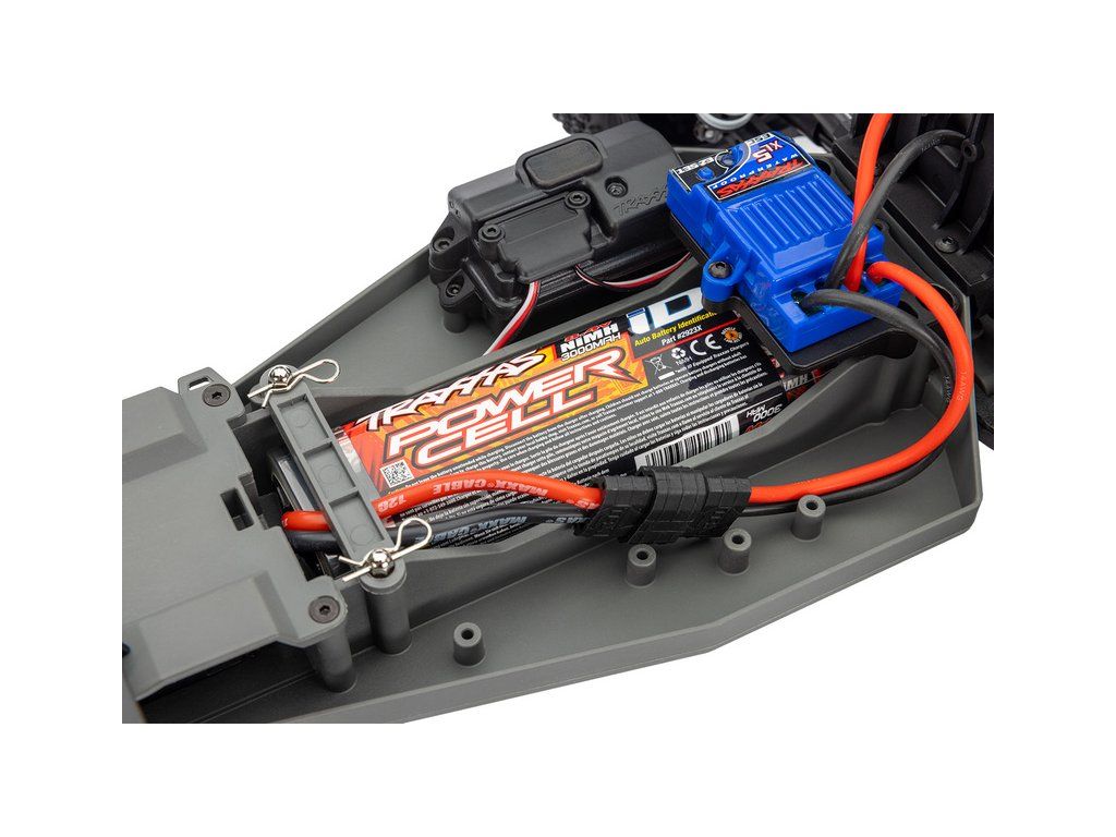 Univerzálními nabíječi Traxxas lze nabíjet akumulátory Traxxas typu LiPo a NiMH. (Nabíječ obsažený v balení je určen jen pro akumulátor typu NiMH, který je součástí balení.) Nabíječe Traxxas představují jednoduchý a bezpečný způsob nabíjení akumulátorů. Společnost Traxxas využívá jedinečný systém iD, díky tomu máte vždy jistotu, že vše jednoduše a bezpečně zapojíte. V konektoru akumulátoru je integrovaný čip, který nabíječ Traxxas automaticky rozpozná a nastaví za Vás všechny parametry nabíjení akumulátoru. Více informací zde.