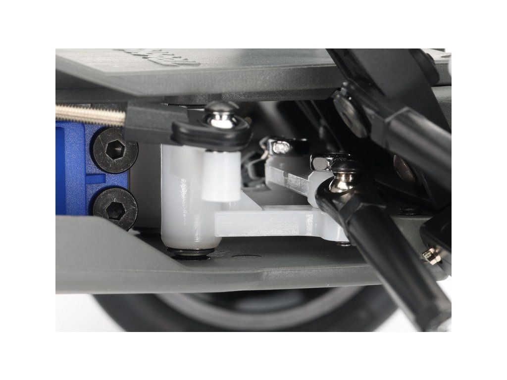 Unikátní systém uchycení karoserie pomocí zobáčků v podbězích kol, umožňuje rychlou a snadnou výměnu baterie a čistý vzhled modelu neruší klipy. Na rozdíl tradičních sloupků s klipy přiléhá karoserie k bezsponkovému držáku mnohem větší plochou a nepopraská.