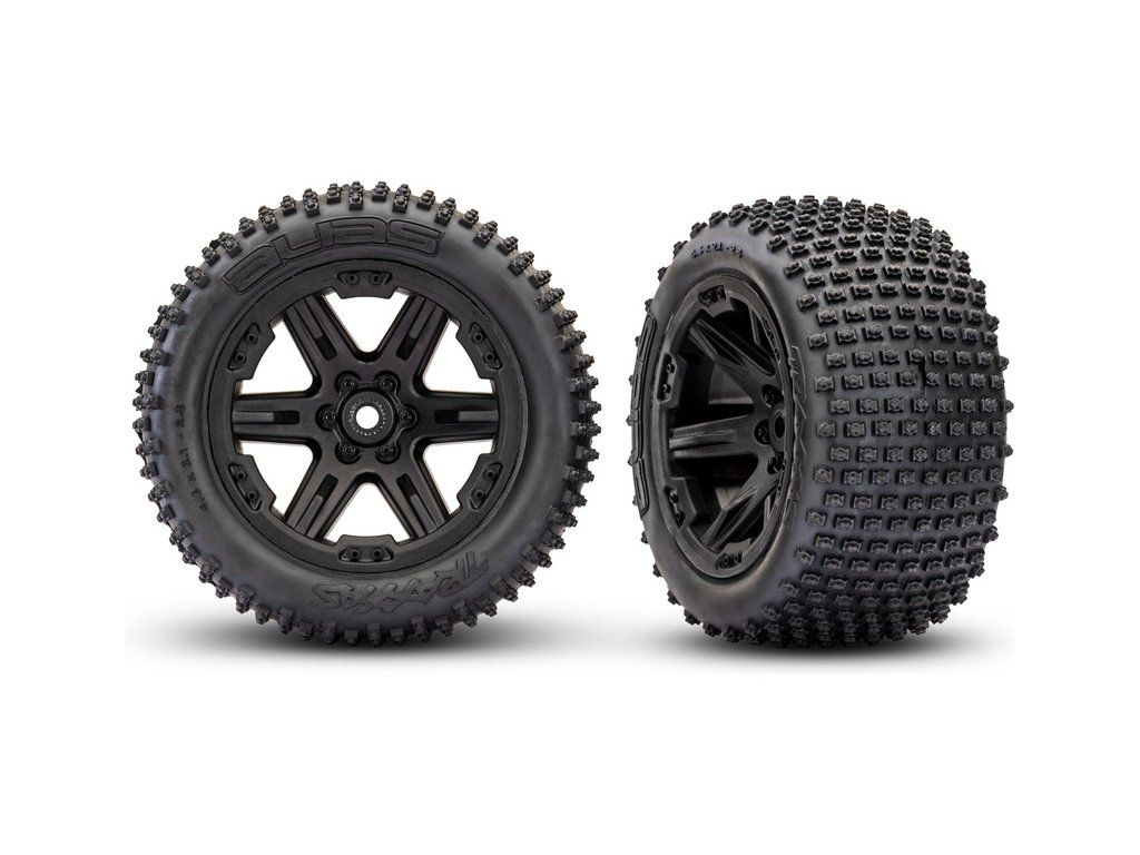 Rustler jezdí na agresivních chromovaných 6paprskových kolech 2.8". Jedinečná pryžová směs pneumatik Alias má vysokou přilnavost na široké škále povrchů včetně hlíny, trávy, betonu i kamenů. Zadní pneumatiky s hroty step-pin, zajišťují výbornou trakci v terénu, zatímco přední pneumatiky s drážkami skvěle drží jízdní stopu.