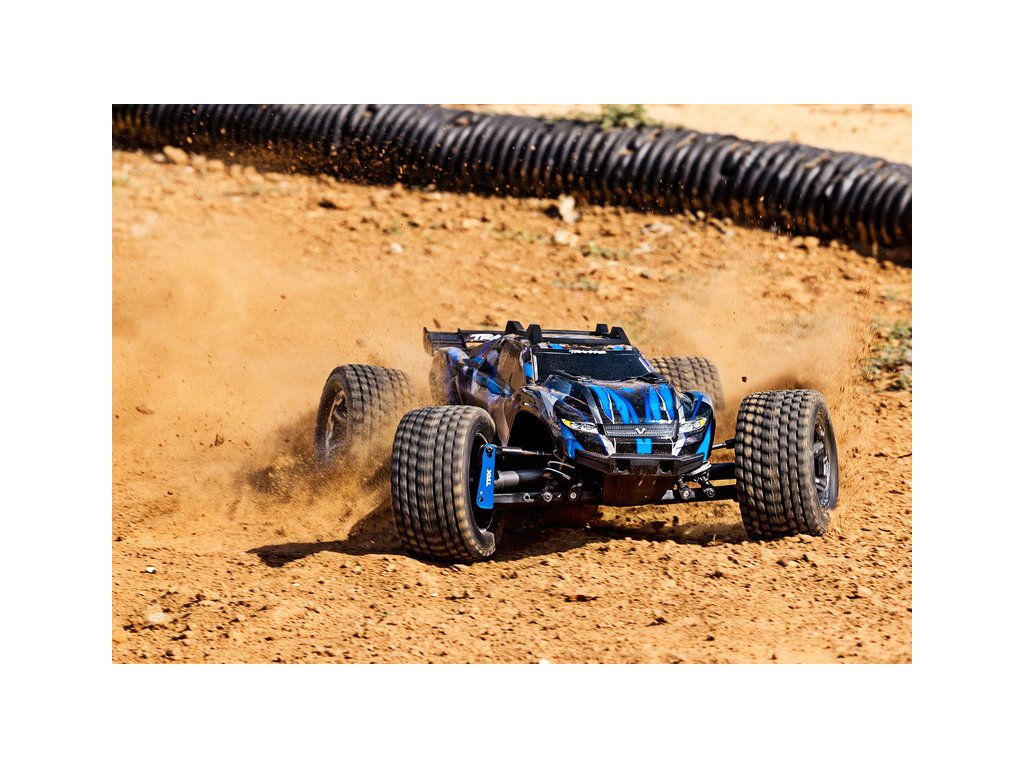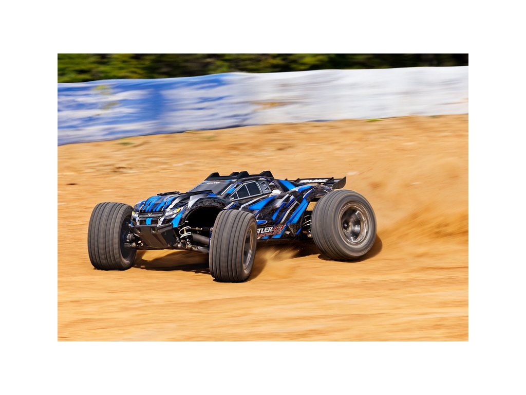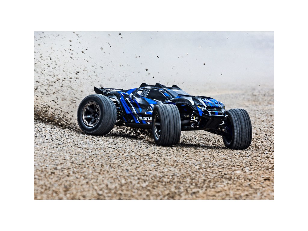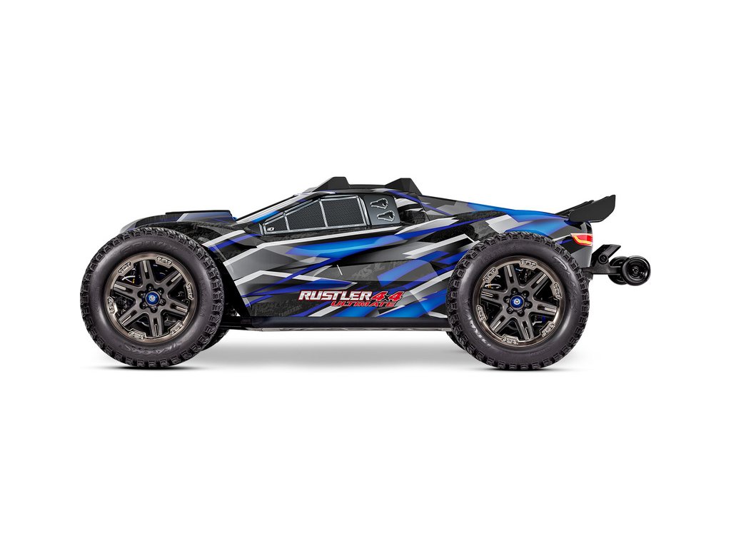 Model auta na dálkové ovládání Traxxas Rustler 1:10 ve vrcholné verzi Ultimate je naprostou špičkou v rychlosti, akceleraci a ovládání. Výkonný střídavý motor Velineon umožňuje rychlost až 104 km/h. K výborné ovladatelnosti přispívá náhon 4x4 a elektronická stabilizace jízdy TSM. Pro vysokou odolnost je na nápravách a šasi použita řada hliníkových dílů, které navíc dodávají unikátní design. Instalované jsou telemetrické senzory a bluetooth modul ve vysílačce, pomocí kterého lze připojit model s telefonem a aplikací Traxxas Link pro zobrazení telemetrie (rychlosti, otáček, teploty motoru, napětí akumulátoru). Použit je rychloupínací systém uchycení karoserie pro čistý vzhled a snadnou výměnu baterie.