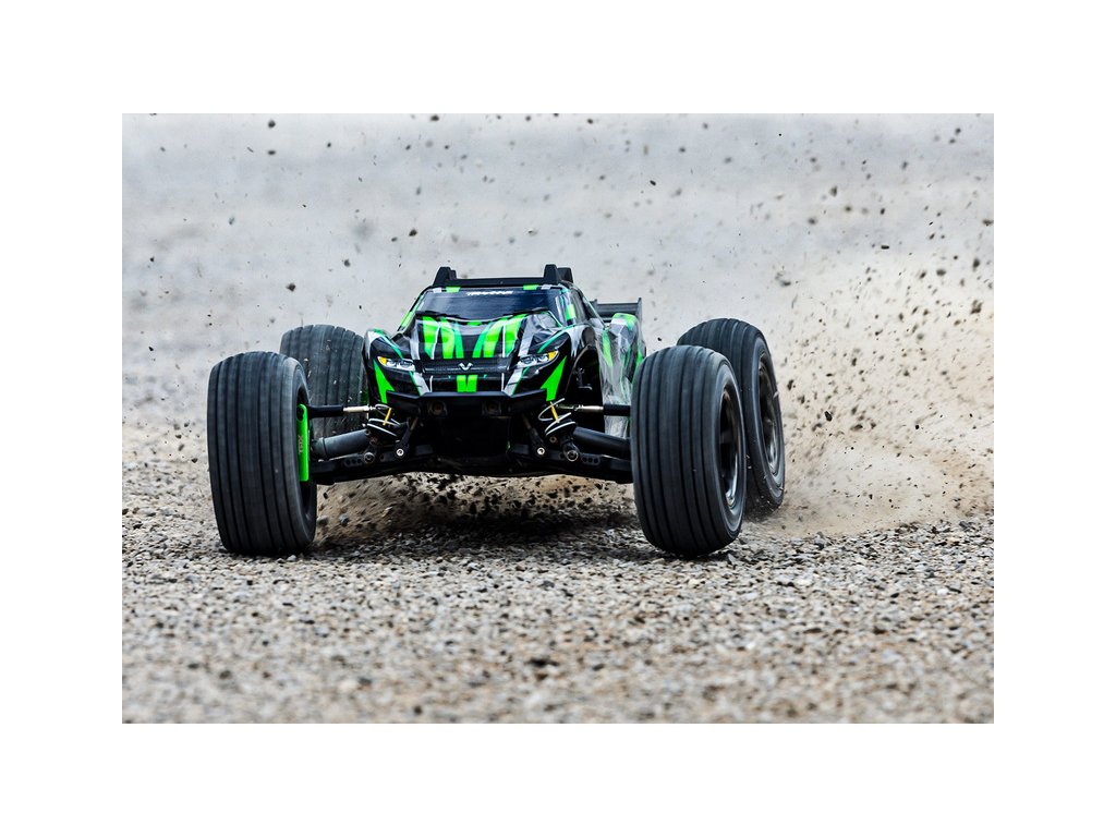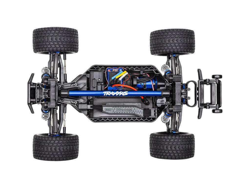 RC model pohání výkonný 4-pólový střídavý motor Velineon 3500kv, který má přesnější chod a 2x vyšší točivý moment. Regulátor otáček obsahuje 3 jízdní režimy, přičemž režim Training sníží výkon na 50%. Tento režim umožňuje bezpečné řízení začátečníkům, či dětem. K řízení je nainstalováno voděodolné* digitální servo Traxxas 2075R.