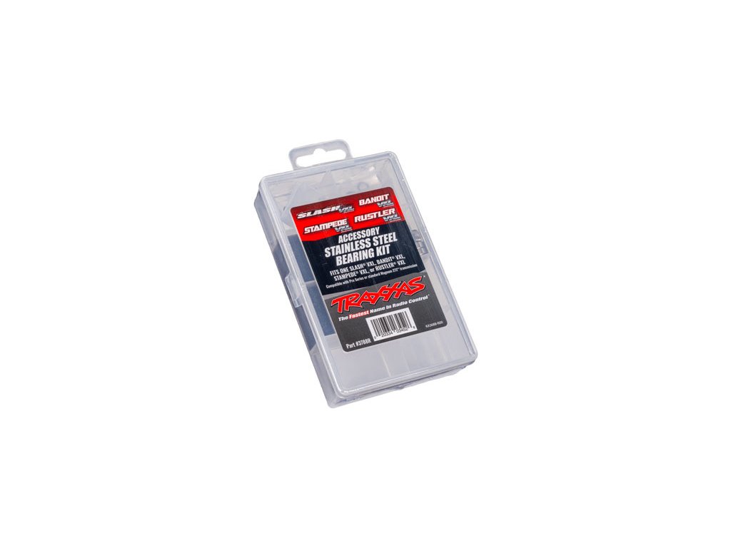 Traxxas sada kuličkových nerezových ložisek pro 2WD modely Slash VXL, Bandit VXL, Stampede VXL, Rustler VXL. Obnovte ložiska na vašem modelu za originální nová s touto náhradní sadou. Sada ložisek je balena v praktické krabičce s přihrádkami a štítkem pro snadnou identifikaci.