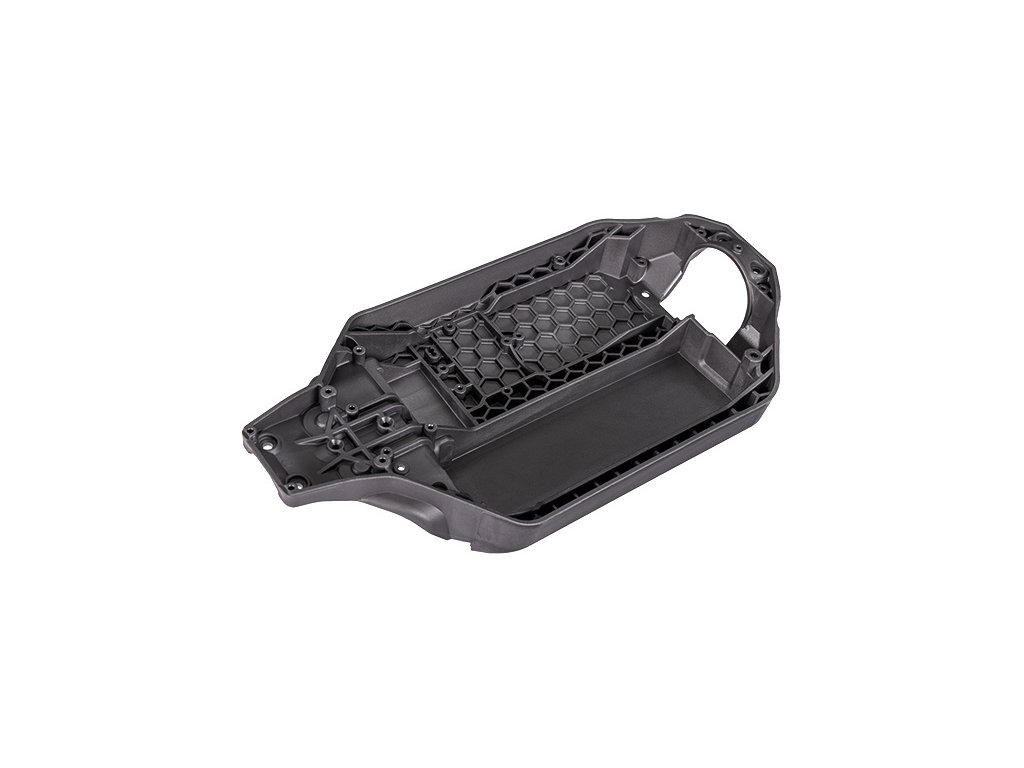 Traxxas šasi uhlově šedé. Lze použít 7-článkové NiMH baterie typu Flat. Univerzální použití baterií maximální délky 162 mm. Nutno použít s dílem TRA7430R a TRA6726X.
