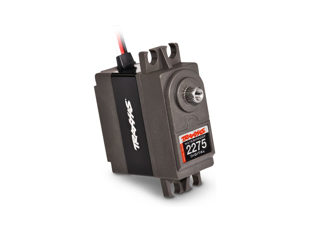 Digitální servo standartní velikosti pro RC modely aut 1:10, Traxxas 2275, voděodolné, polohliníkové tělo, má moment 35 kg.cm @ 7.4V a rychlost 0.16 s/60° @ 7.4V. Kovové převody, rozměry: 41x20x44.5mm, hmotnost 68g. Tisícihran 25T