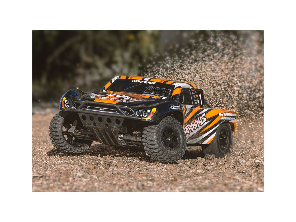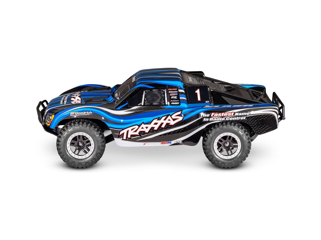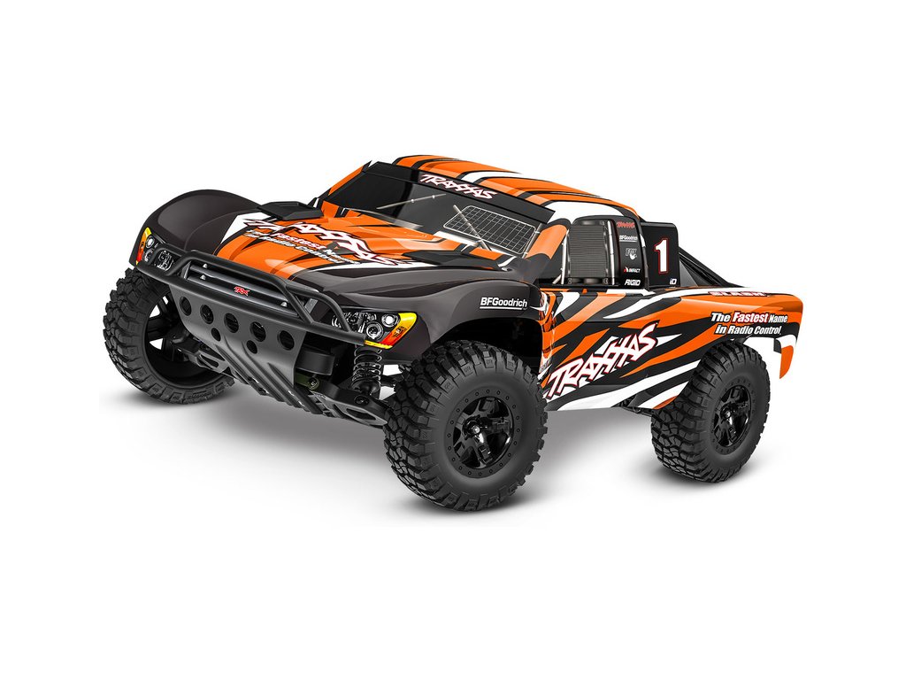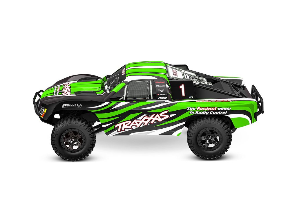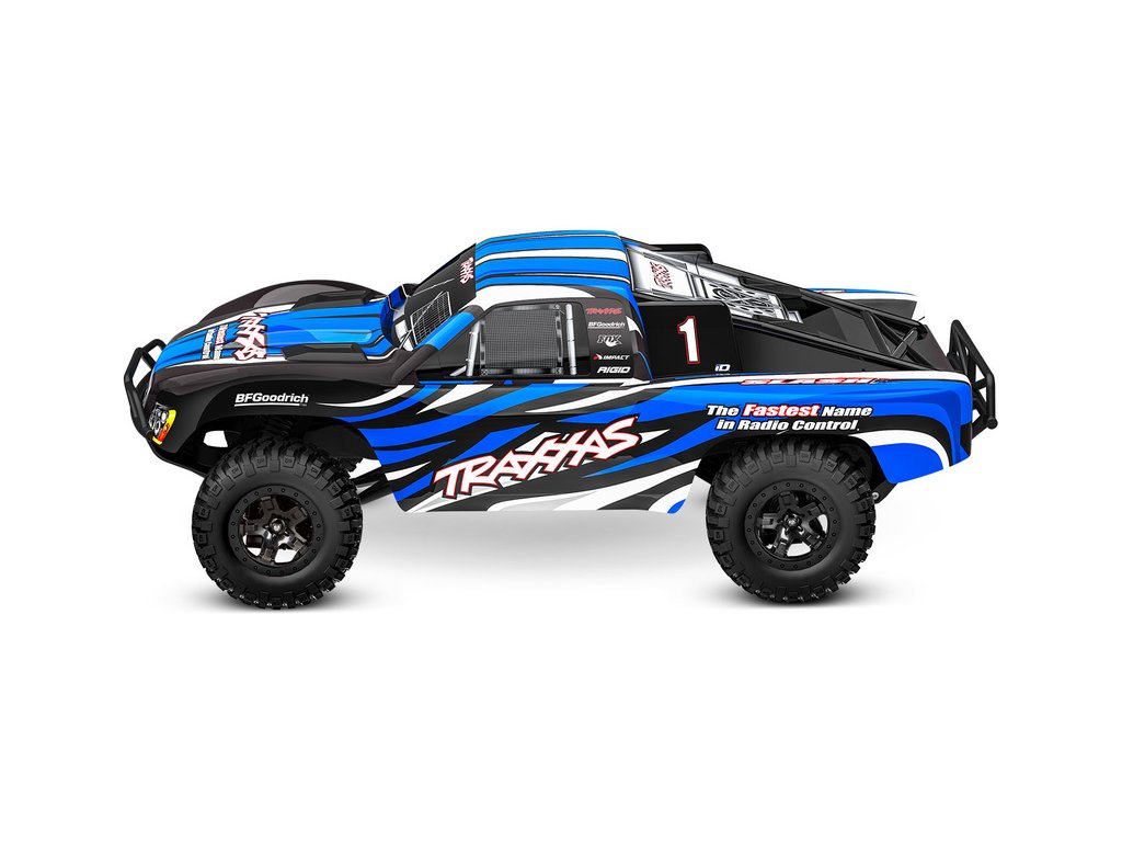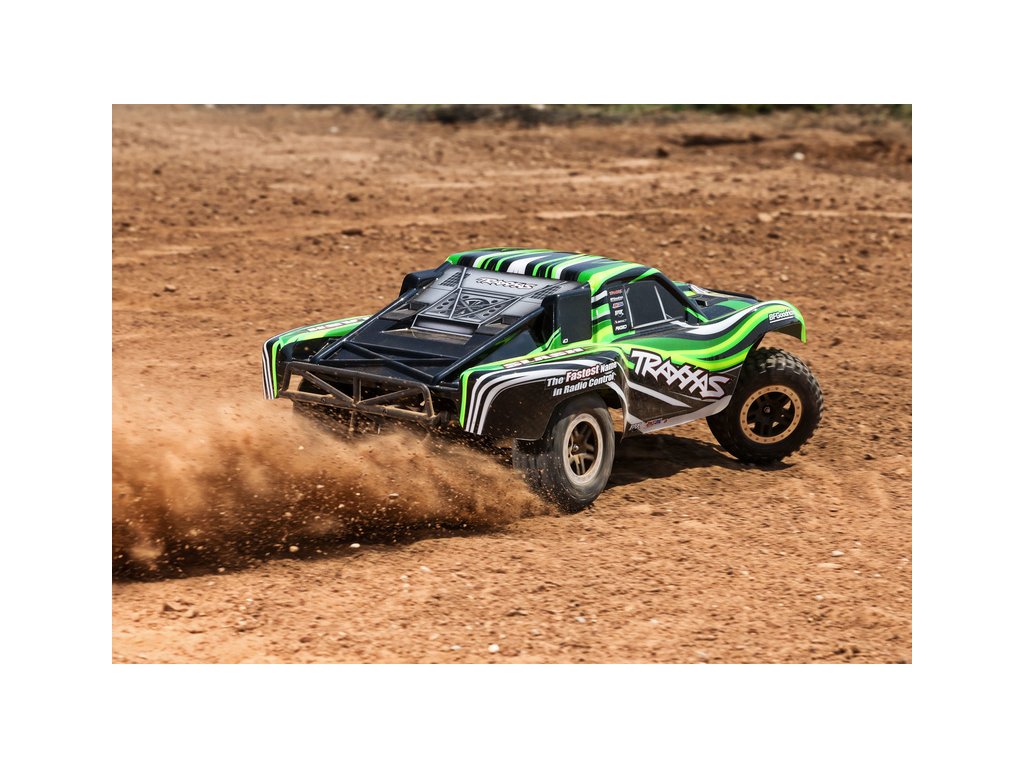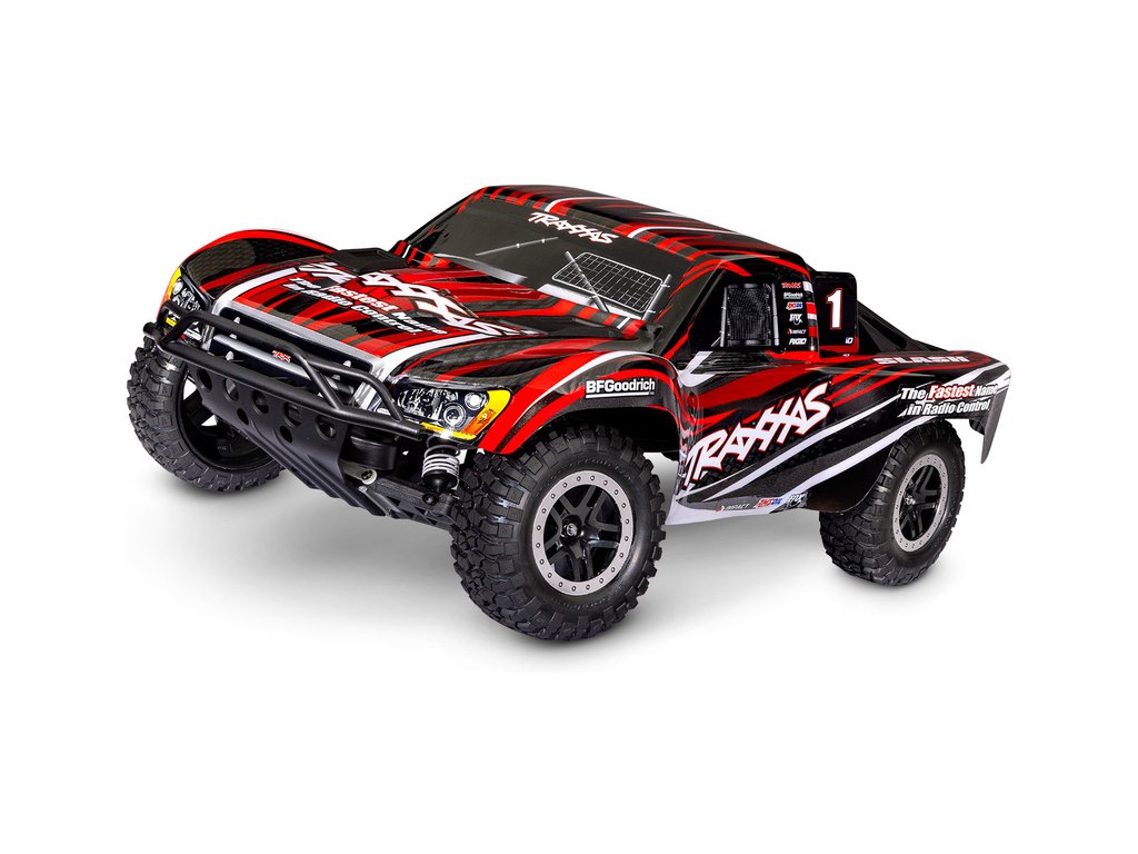 Traxxas Slash je RC model auta 1:10 s náhonem 2WD, který jezdí rychlostí až 48 km/h. Je plně sestaven a připraven k jízdě ihned po vybalení z krabice. Pohání jej výkonný stejnosměrný motor Titan 550 12T s regulátorem XL-5. Jednoduchá RC souprava Traxxas TQ 2.4 GHz poskytuje precizní mechaniku pro přesné řízení. Obsažen je NiMH akumulátor a moderní USB-C nabíječ pro bezpečný a bezstarostný provoz. Nově je na modelu použitý bezsponkový systém uchycení karoserie pro snadnou výměnu baterie a továrně jsou instalovány prvky zavěšení Extreme Heavy Duty pro vysokou odolnost.