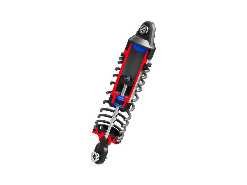 Olejové tlumiče s vysokým zdvihem využívají duální X-kroužky pro dokonalé utěsnění a perfektní chod. Robustní design v kombinaci s vysokým objemem oleje dokáže absorbovat i tvrdé nárazy v těžkém terénu. Tlumiče si můžete naladit podle svých představ úpravou pružin a změnou viskozity oleje.