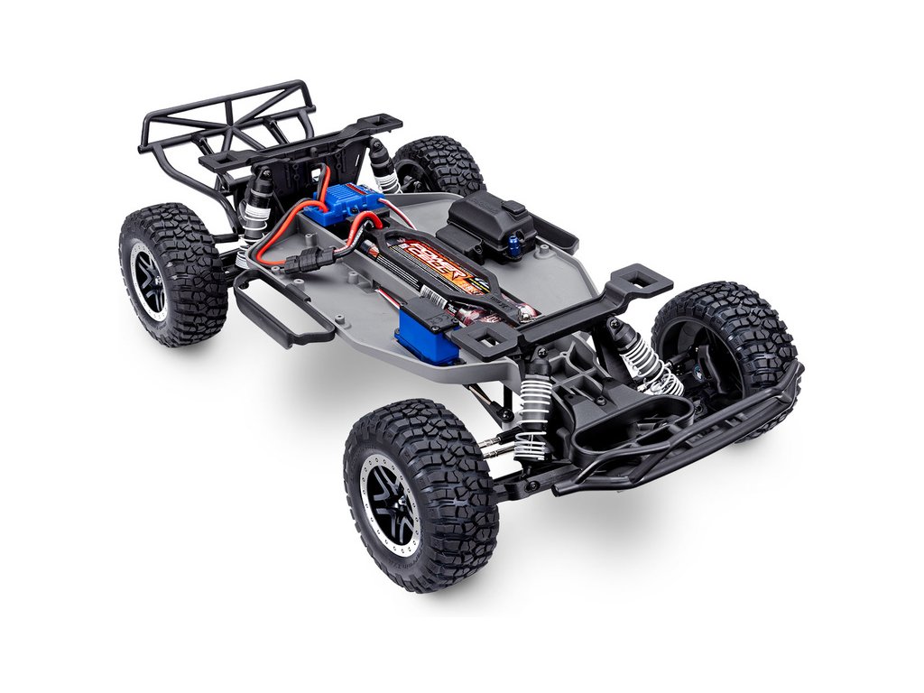 Traxxas Slash je RC model auta 1:10 s náhonem 2WD, který jezdí rychlostí až 48 km/h. Je plně sestaven a připraven k jízdě ihned po vybalení z krabice. Pohání jej výkonný stejnosměrný motor Titan 550 12T s regulátorem XL-5. Jednoduchá RC souprava Traxxas TQ 2.4 GHz poskytuje precizní mechaniku pro přesné řízení. Obsažen je NiMH akumulátor a moderní USB-C nabíječ pro bezpečný a bezstarostný provoz. Nově je na modelu použitý bezsponkový systém uchycení karoserie pro snadnou výměnu baterie a továrně jsou instalovány prvky zavěšení Extreme Heavy Duty pro vysokou odolnost.