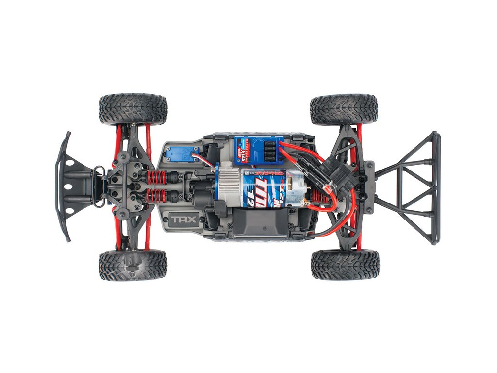 Výkonný RC model auta Traxxas Slash 4WD 1:16, na zahradu a do lehčího terénu, je navržen na platformě osvědčených modelů E-Revo a obsahuje speciální systém odpružení pomocí tlumičů bezpečně uložených v modelu a přepákovaných přes vahadla. Model Vás, díky nadrozměrnému stejnosměrnému motoru, svým výkonem prostě ohromí. Je plně vybaven jako velké modely včetně olejových tlumičů, třecí spojky a diferenciálů. Akumulátor a USB-C nabíječ je obsahem balení, můžete tak ihned vyjet za zábavou s rychlostí až 35 km/h.