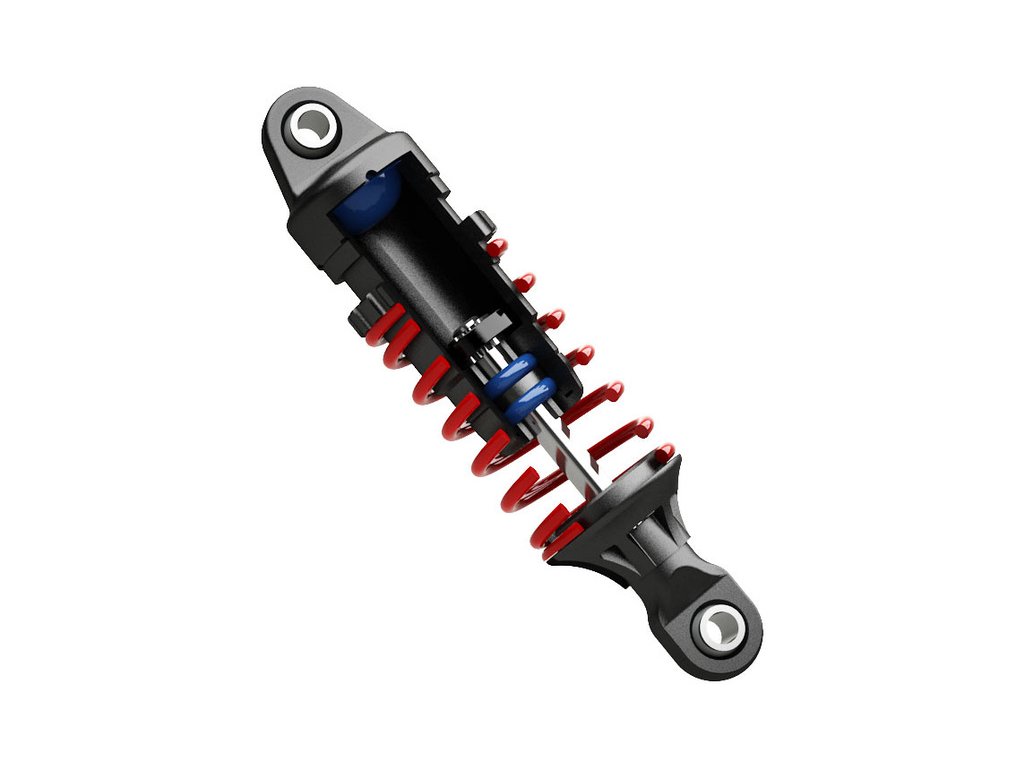 Tento malý RC model si poradí i s členitým terénem, díky olejovým tlumičům GTR. Tlumiče obsahují těsnící kroužky, které minimalizují prostup oleje kolem pístnice. Tlumiče jsou plně nastavitelné, předpětí pružin lze pohodlně změnit maticí na tlumiči, tuhost lze měnit změnou viskozity v oleje.