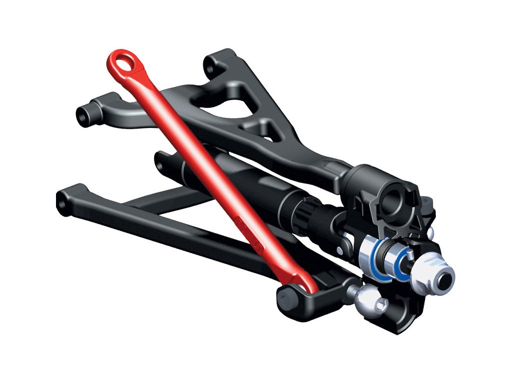 Model využívá jedinečný systém odpružení, kdy jsou tlumiče bezpečně uložené v šasi modelu. Výkyv ramene je na tlumič přenášen pomocí táhla a vahadla.