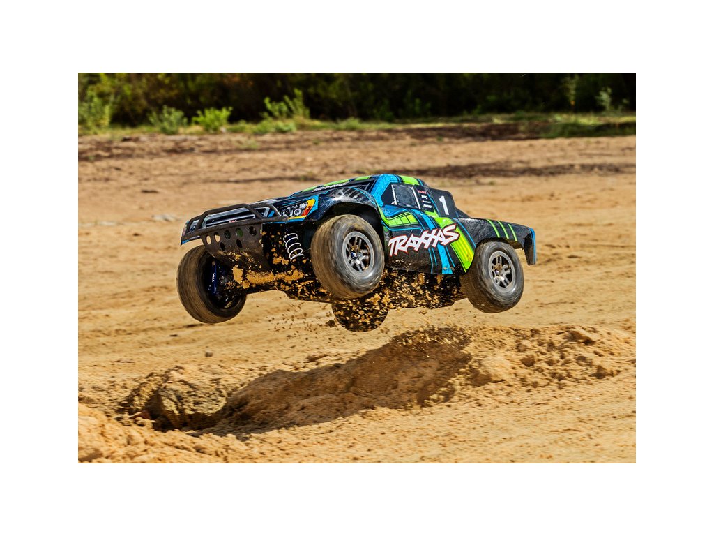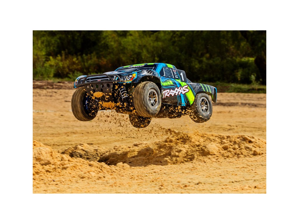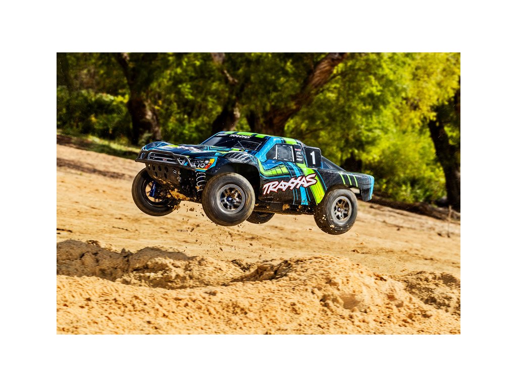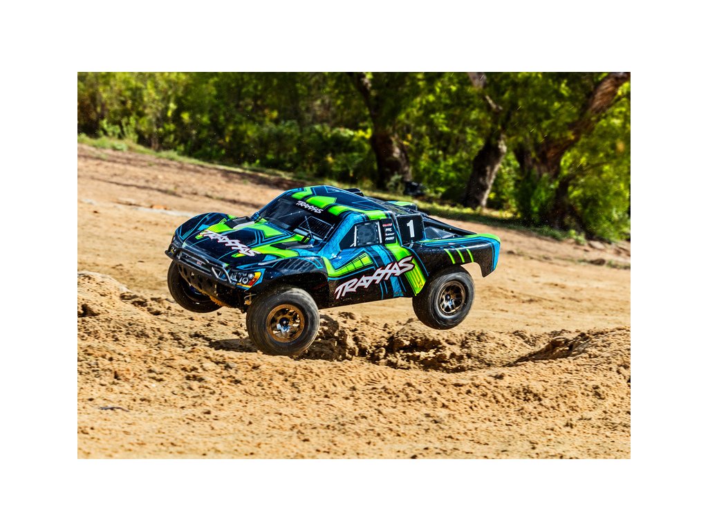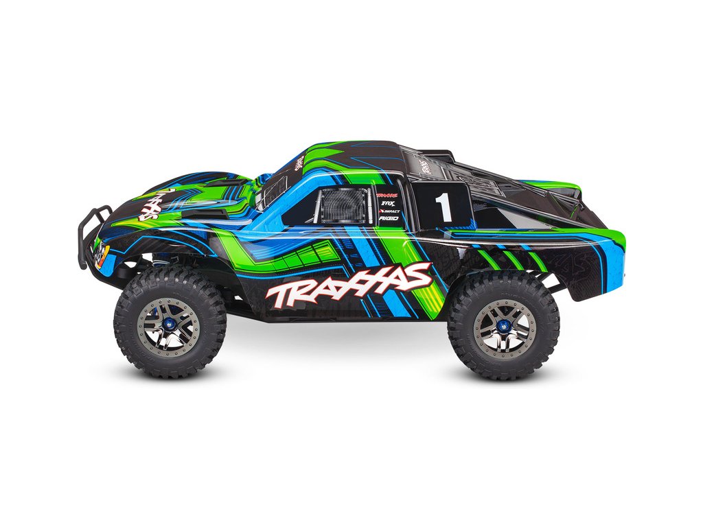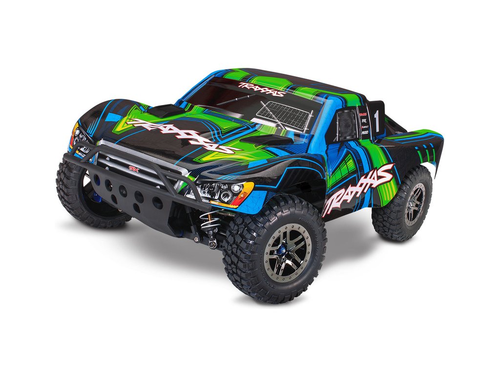 RC modelu auta Traxxas Slash ve vrcholné verzi Ultimate VXL s výkonným střídavým motor Velineon, stabilizací TSM, řadou hliníkových dílů, LCG šasi, bezsponkovou karoserií, instalovanými telemetrickými senzory a RC soupravou TQi s Bluetooth modulem. Rychlost 96 km/h.