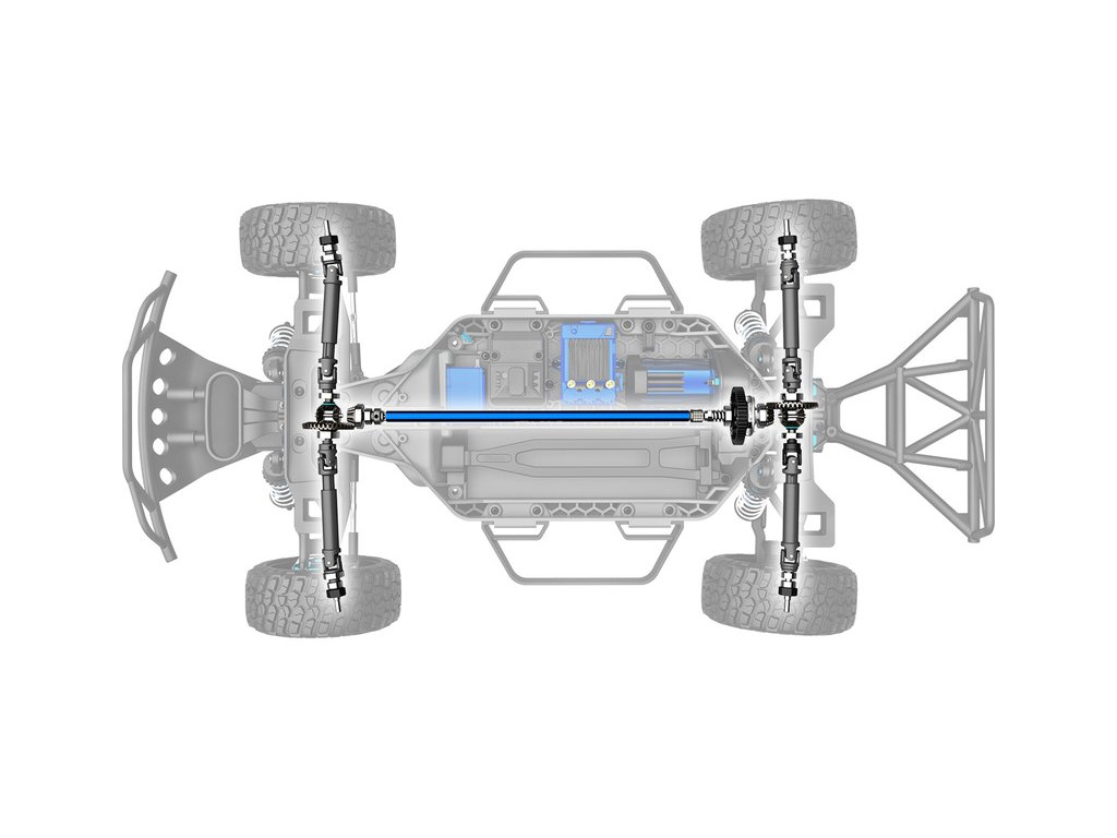 Slash 4X4 Ultimate využívá důmyslný systém přenosu síly od motoru ke kolům. Ohromná síla střídavého motoru je přenášen přes třecí spojku na hliníkovou centrální hřídel a dále na diferenciály s kovovými, kalenými převody. Všechny komponenty včetně vyztužených poloos, jsou vyrobeny z kvalitních materiálů, aby byla zajištěna maximální tuhost a nízká váha.