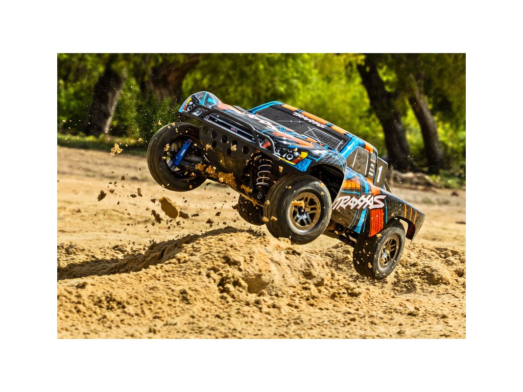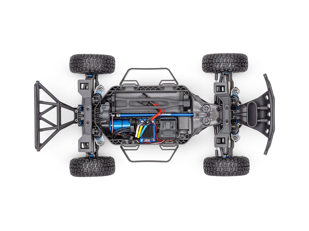 RC Model pohání výkonný 4-pólový střídavý motor Velineon 3500kv, který má přesnější chod a 2x vyšší točivý moment. Regulátor otáček obsahuje 3 jízdní režimy, přičemž režim Training sníží výkon na 50%. Tento režim umožňuje bezpečné řízení začátečníkům, či dětem. K řízení je nainstalováno voděodolné* digitální servo Traxxas 2075R.