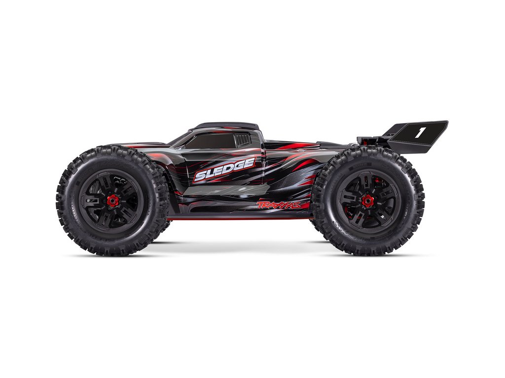 Neuvěřitelně výkonný RC model auta Traxxas Sledge 1:8, vyladěný do nejmenšího detailu.Rychlost až 112 km/h. Elektronika s podporou telemetrie a stabilizací TSM, RC souprava TQi, hliníkové šasi, bez-sponková karoserie, nově s vyztuženými pneu Sledgehammer.
