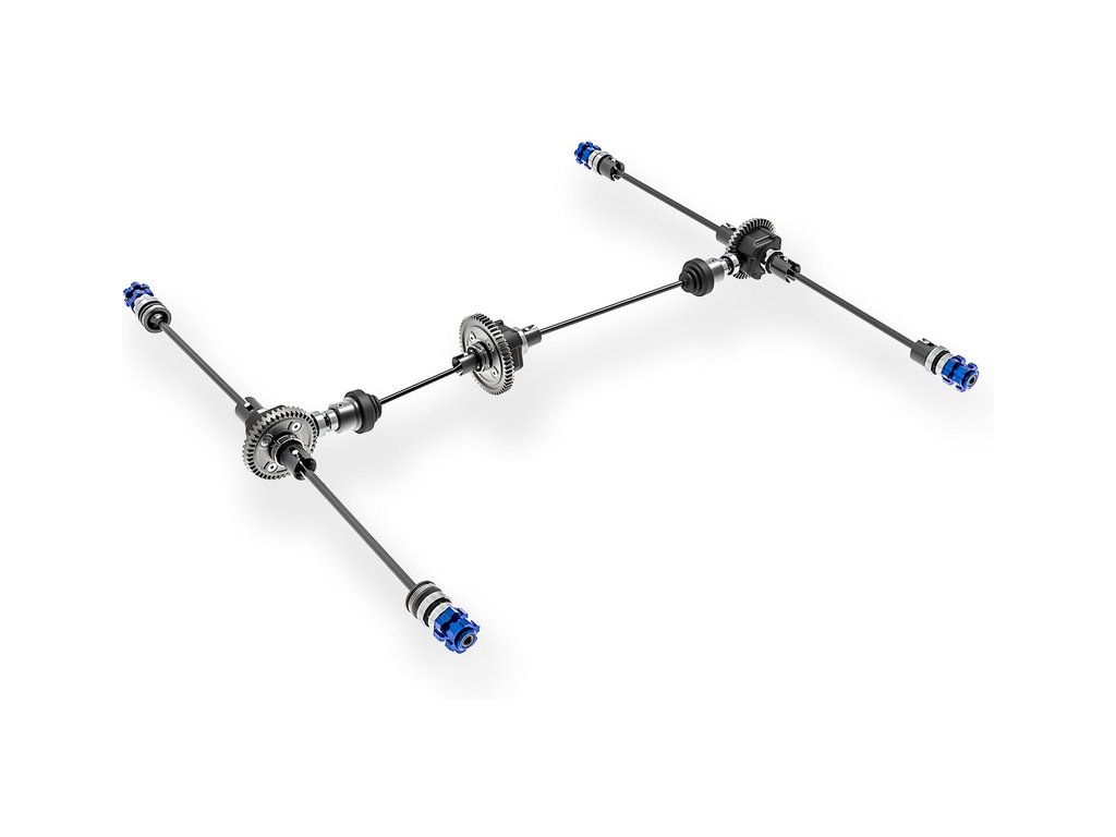 Rozložení výkonu mezi jednotlivá kola, mají na starosti tři diferenciály s kovovým ozubením, které jsou uloženy v kuličkových ložiscích. Středový diferenciál je naplněn hustým olejem, aby poskytl odpovídající svornost a rovnoměrně rozdělil výkon mezi nápravy. Přední a zadní diferenciál využívá mohutnější ocelové převody, které jsou ve srovnání s běžnými typy v této kategorii o 20% větší a 75% tlustší.
