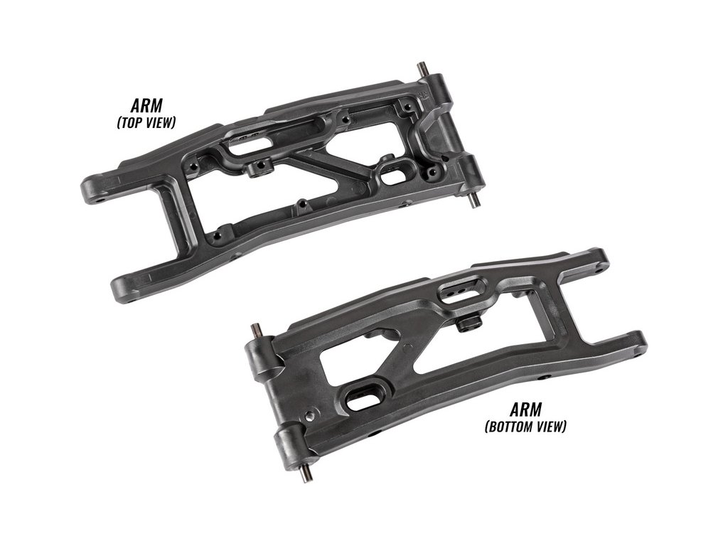 Podvozek RC modelu tvoří lehký a odolný hliníkový plát o tloušťce 3.2 mm. Po celé délce jsou hrany tvarované pro zvýšení pevnosti. Obří přední a zadní příčné výztuhy, připevněné v šesti bodech, poskytují zvýšenou odolnost na nejvíce exponovaných místech při dopadu modelu, což jsou krky podvozku u zavěšení. Pro celkové propojení a vyztužení je použita patentovaná středová výztuha ve tvaru T. Stejně jako podvozek a středová výztuha jsou i věže tlumičů hliníkové s krásným modrým eloxováním.