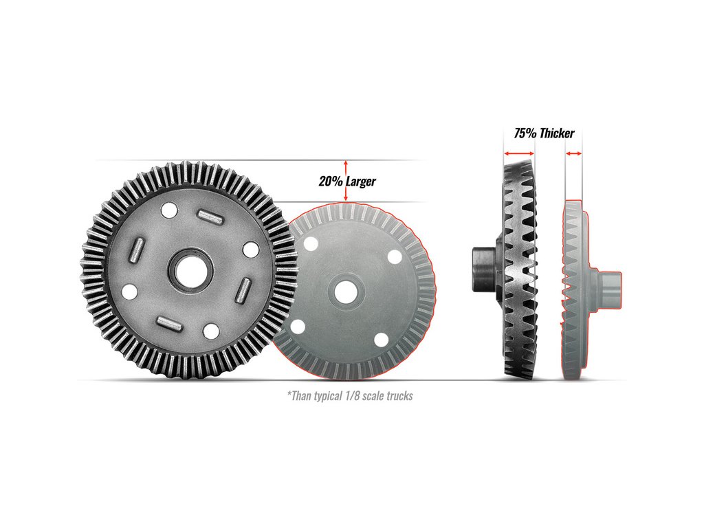 Extrémní výkon motoru je přenášen na kola přes dostatečně dimenzované pohonné ústrojí, které bylo navrženo pro dlouhou životnosti. Masivní ocelová ozubená kola a tři diferenciály s kovovými převody přenášejí výkon na vysoko pevnostní ocelové poloosy. Na přední nápravě jsou použity stejnoběžné CV klouby s hladkým chodem. Středové hřídele jsou opatřeny manžetou, která udržuje olej uvnitř a klouby jsou tak vždy namazané.