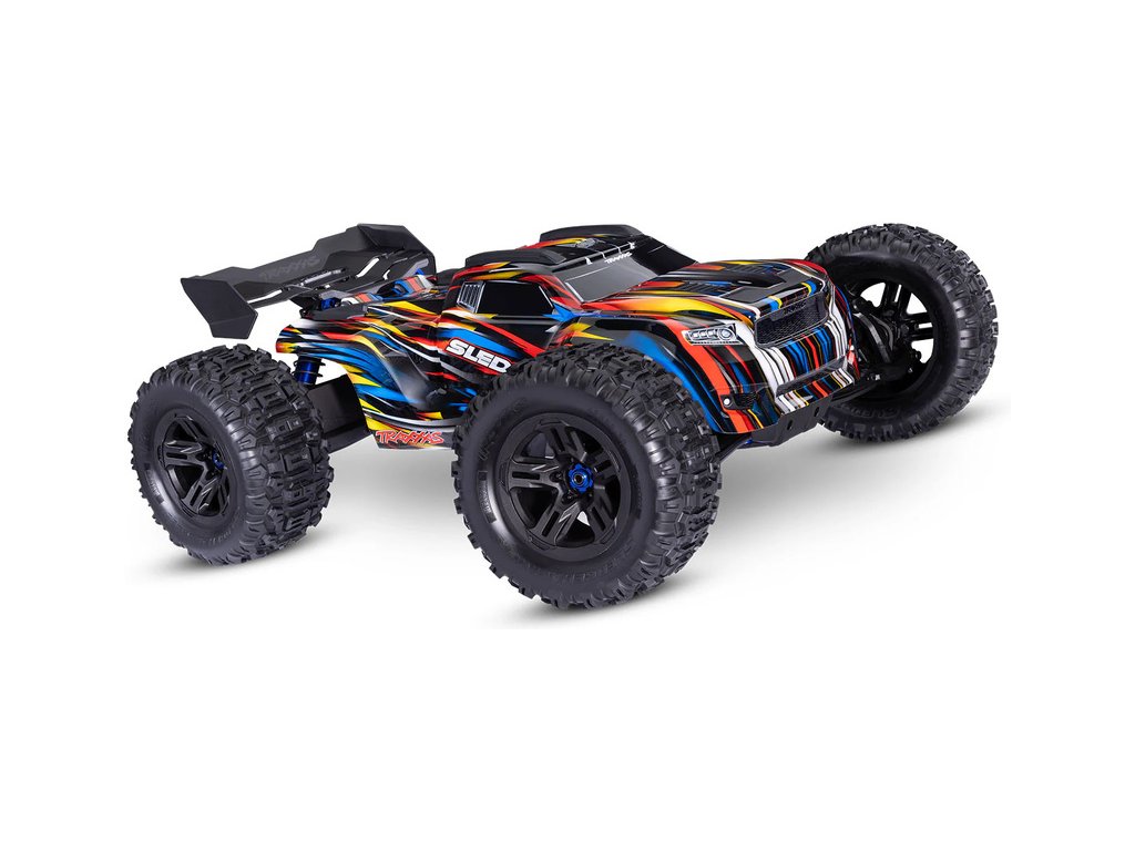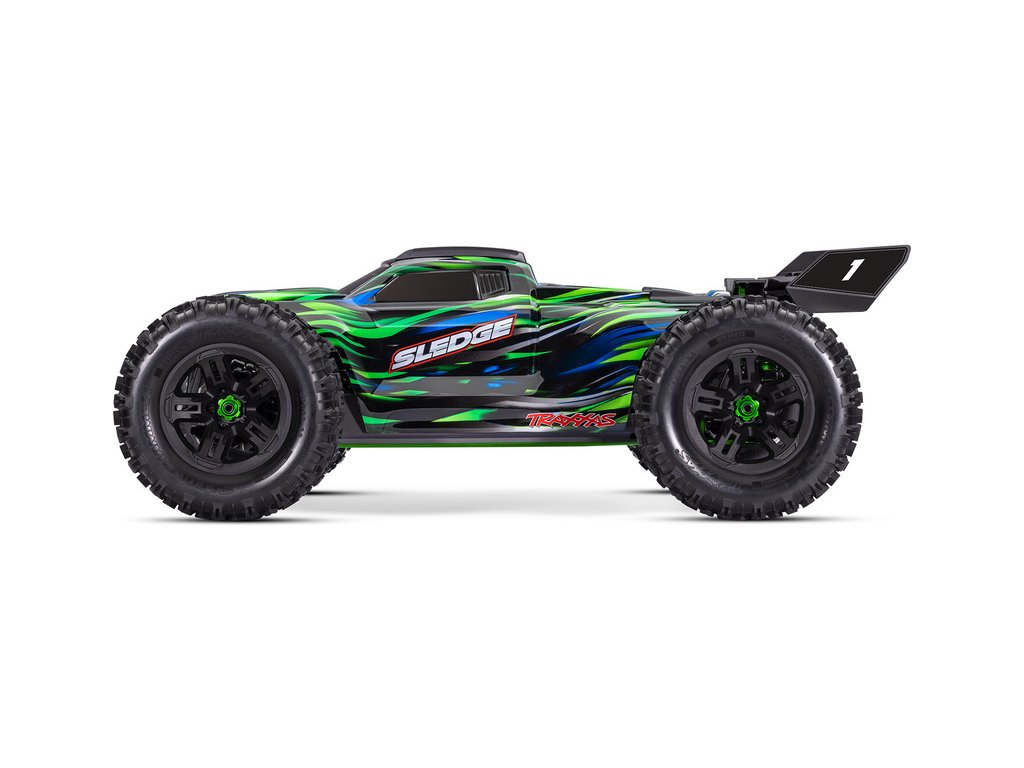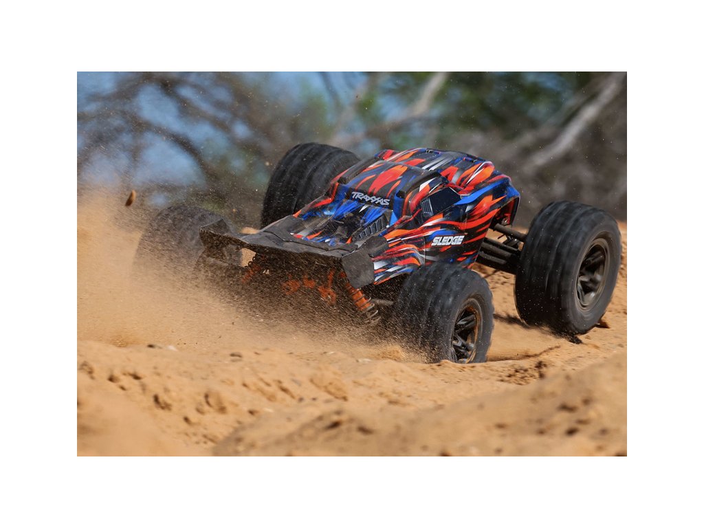 Neuvěřitelně výkonný RC model auta Traxxas Sledge 1:8, vyladěný do nejmenšího detailu.Rychlost až 112 km/h. Elektronika s podporou telemetrie a stabilizací TSM, RC souprava TQi, hliníkové šasi, bez-sponková karoserie, nově s vyztuženými pneu Sledgehammer.