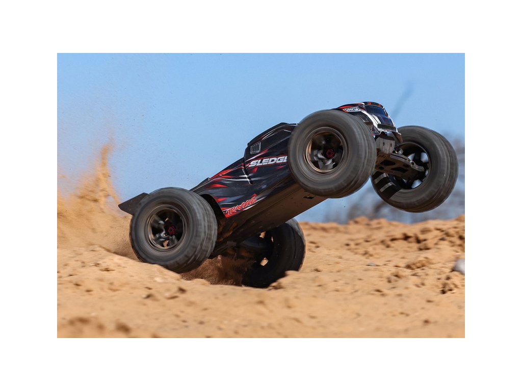 Nový RC model auta Sledge je navržen tak, aby překonal dosavadní standardy a stal se nejlépe zpracovaným, odolným a zábavným RC modelem. S napájením 6S LiPo a výkonným střídavým motorem, dosáhne Sledge až rychlosti 112 km/h, čímž se stal jedním z nejrychlejších modelů v měřítku 1:8. Veškeré komponenty byly důsledně navrženy a stovky hodin testovány, čímž bylo dosaženo maximální kvality. Díly jsou krásně tvarované, sestavené a plastové části jsou přesně integrované do kovového podvozku. S tímto modelem si užijete spoustu zábavy jak při volném ježdění v terénu, při skocích ve skateparku, nebo díky vynikající ovladatelnosti a nízkému těžišti i na závodní dráze.