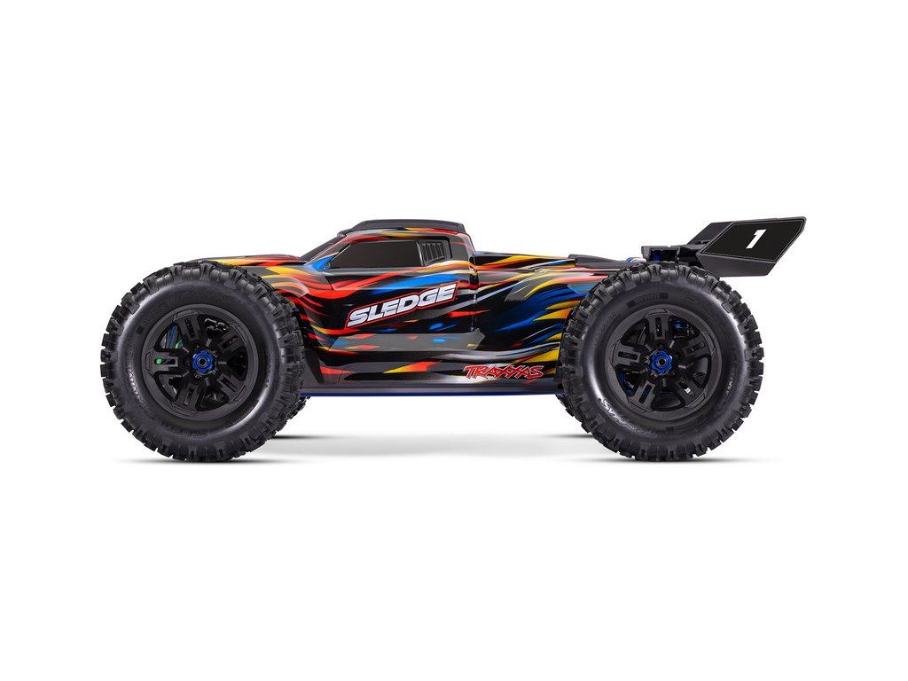 Neuvěřitelně výkonný RC model auta Traxxas Sledge 1:8, vyladěný do nejmenšího detailu.Rychlost až 112 km/h. Elektronika s podporou telemetrie a stabilizací TSM, RC souprava TQi, hliníkové šasi, bez-sponková karoserie, nově s vyztuženými pneu Sledgehammer.