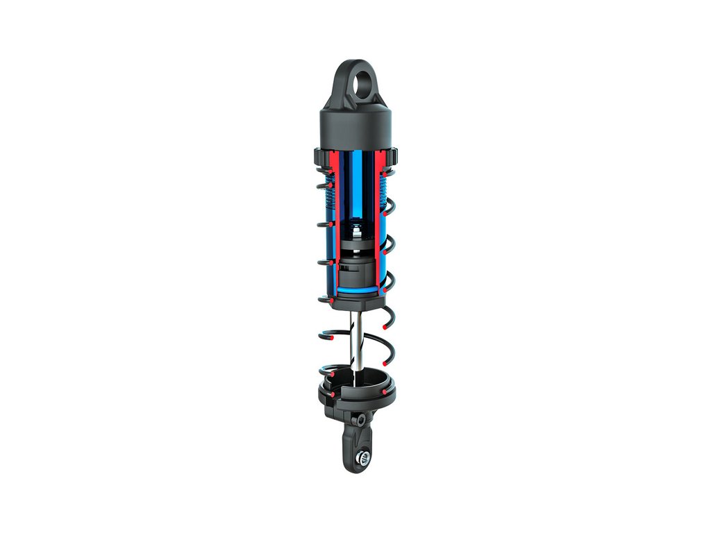 Čtyři mimořádně velké tlumiče GT-Maxx účinně absorbují i ty nejtvrdší dopady. Olejem plněné hliníkové tělo tlumičů je opatřeno závitem a maticí pro snadné nastavení předpětí pružin. Proti úniku oleje kolem pístnice je tlumič vybaven dvojitými X-kroužky.