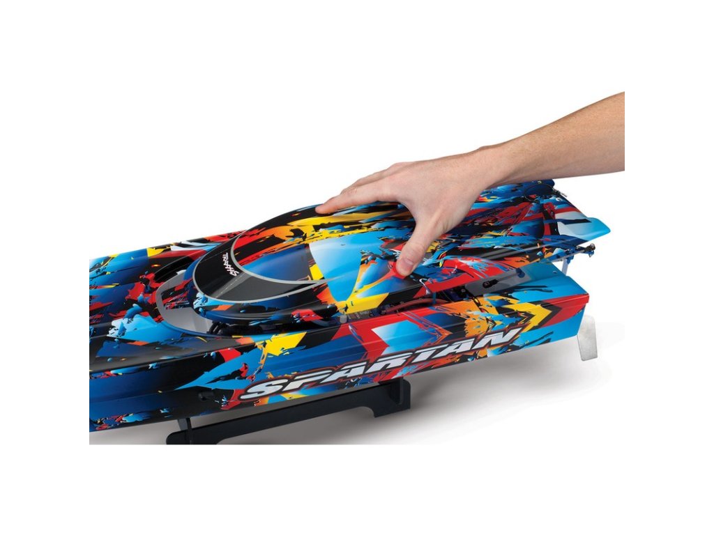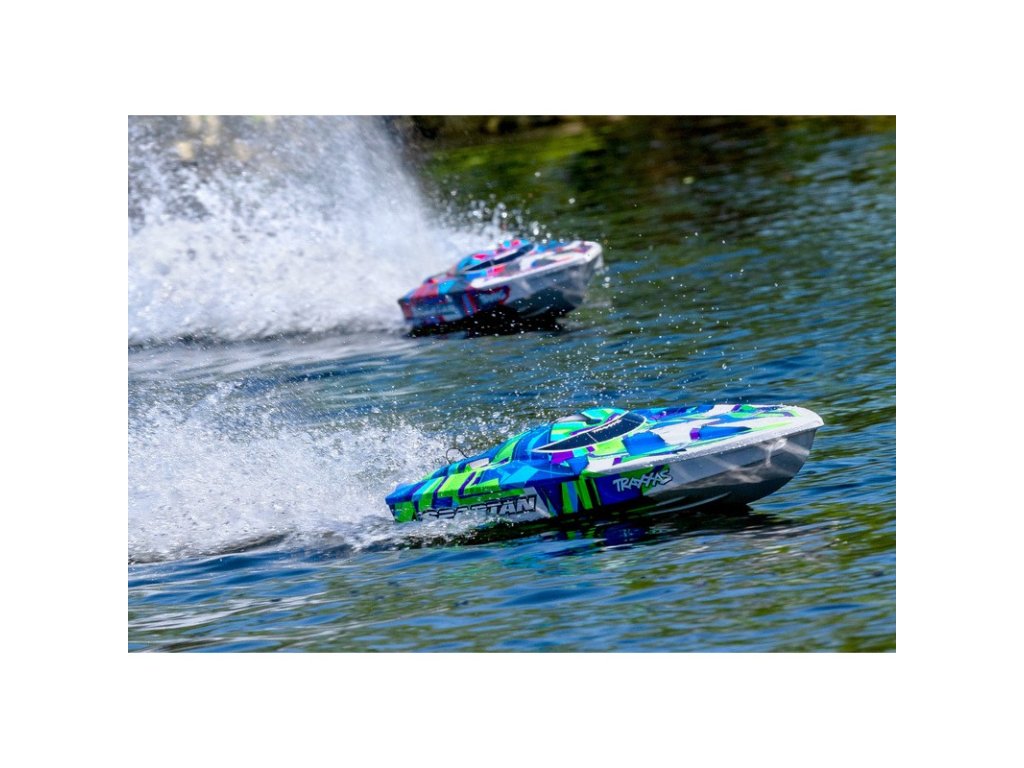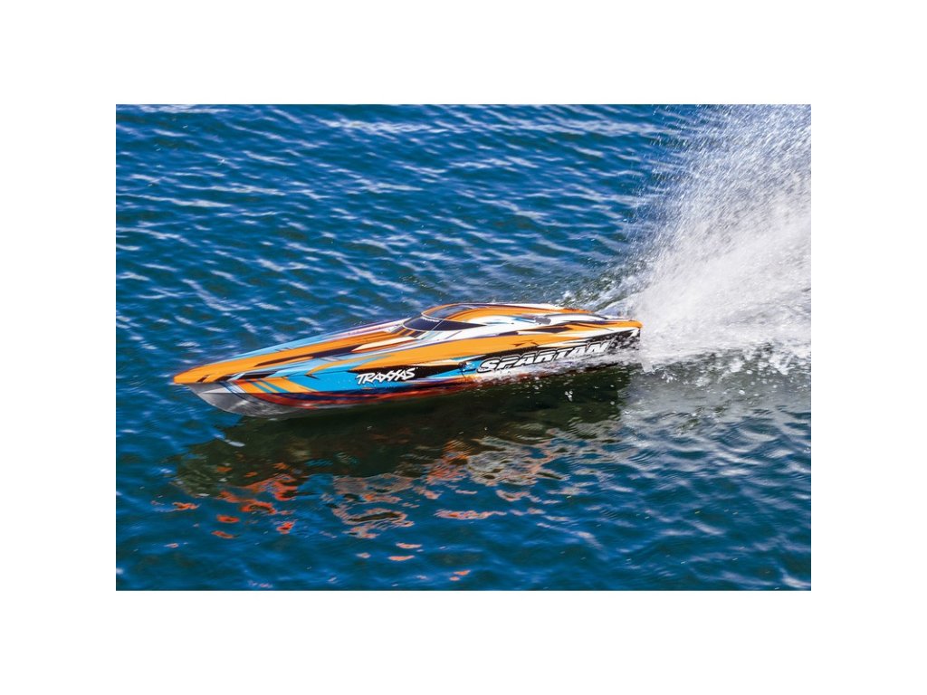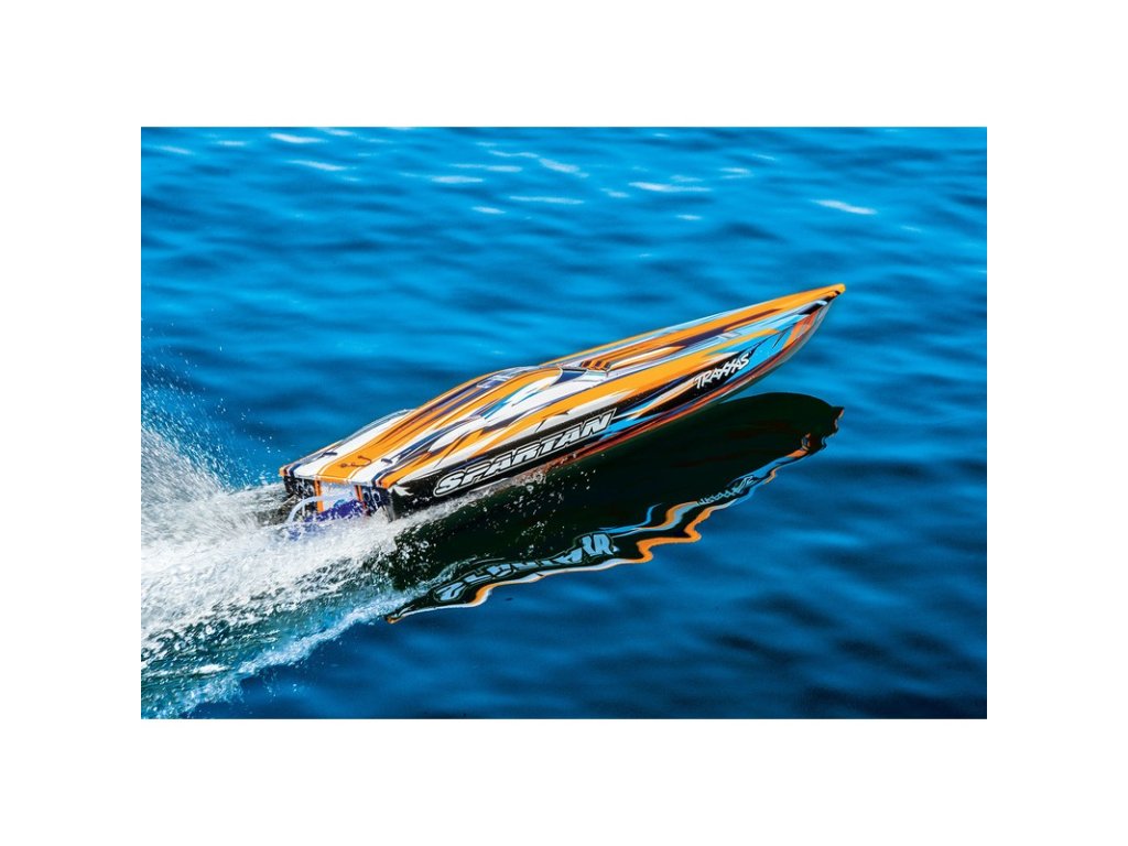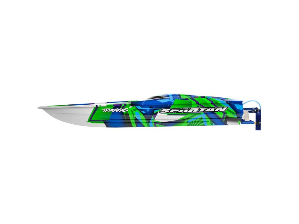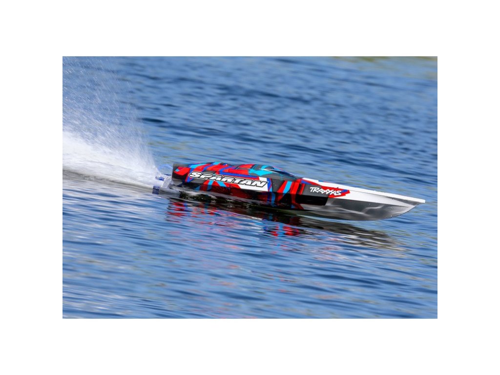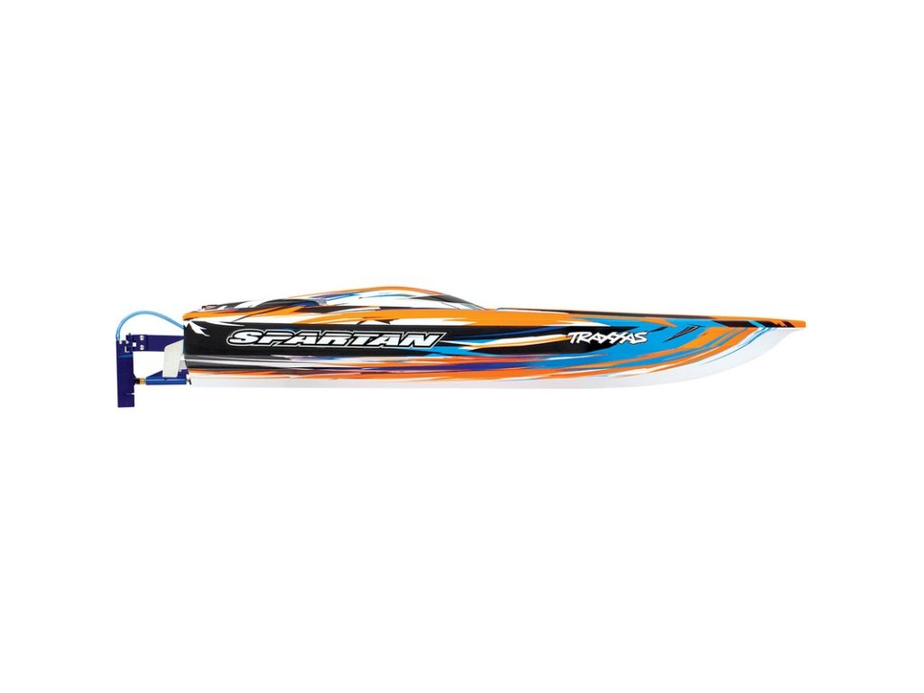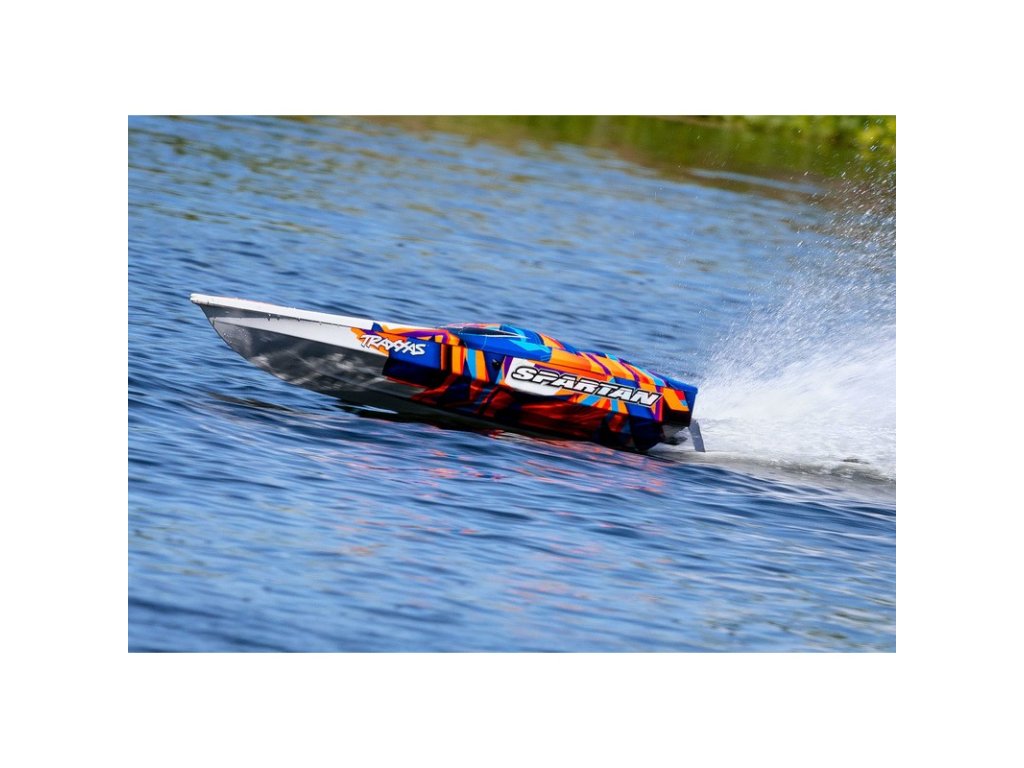 Rychlý člun Traxxas Spartan BL je poháněn střídavým motorem s vodním chlazením, programovatelným regulátorem s reverzem a vodním chlazením kompatibilním s LiPol nebo dvěma 7 čl. bateriemi NiMH. Rychlost přes 80 km/h! Spartan je loď která dělá čest svému výrobci. Čistý, moderní design trupu, integrované přihrádky na baterie pro širokou škálu baterií, výkonné rádio TQi 2,4 GHz s inovativním systémem Traxxas Stability Management (TSM) udržuje Spartan pod úplnou kontrolou. Spartan má sílu, rychlost, pohodlí a hlavně zábavu! Připravte se na konečný výlet RC lodí od Traxxas.