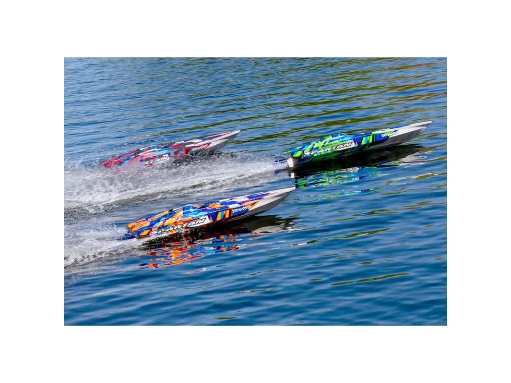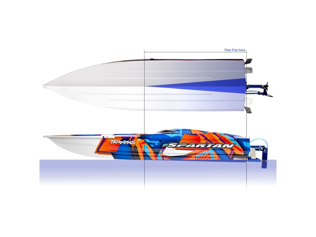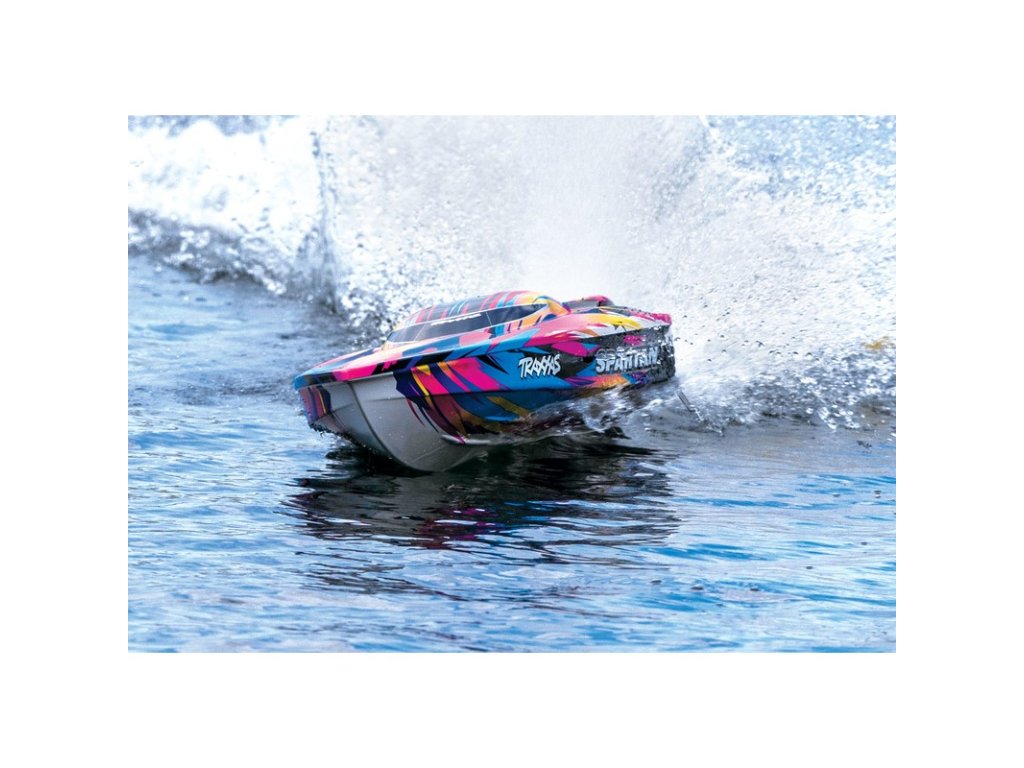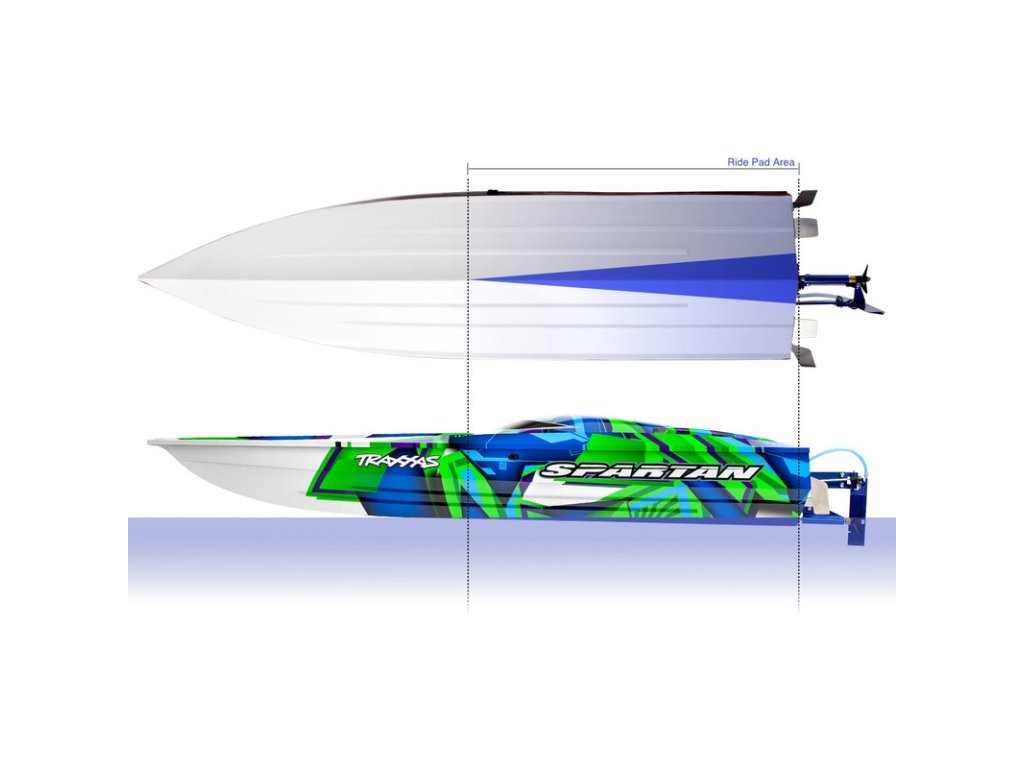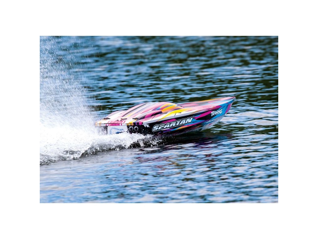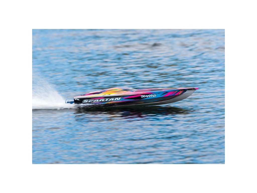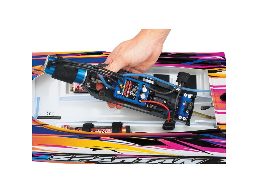 Rychlý člun Traxxas Spartan BL je poháněn střídavým motorem s vodním chlazením, programovatelným regulátorem s reverzem a vodním chlazením kompatibilním s LiPol nebo dvěma 7 čl. bateriemi NiMH. Rychlost přes 80 km/h! Spartan je loď která dělá čest svému výrobci. Čistý, moderní design trupu, integrované přihrádky na baterie pro širokou škálu baterií, výkonné rádio TQi 2,4 GHz s inovativním systémem Traxxas Stability Management (TSM) udržuje Spartan pod úplnou kontrolou. Spartan má sílu, rychlost, pohodlí a hlavně zábavu! Připravte se na konečný výlet RC lodí od Traxxas.